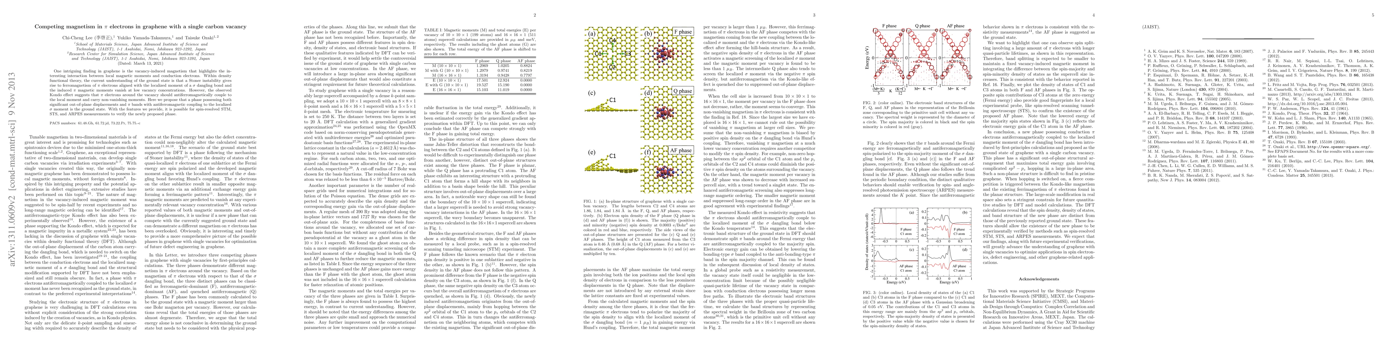 This paper investigates the magnetism in graphene with a single carbon vacancy, suggesting that the ground state involves a combination of out-of-plane displacements and antiferromagnetic coupling between π electrons and the local σ dangling bond moment, as opposed to the previously predicted ferromagnetism. The proposed phase can be verified using spin-resolved STM, STS, and ARPES measurements.