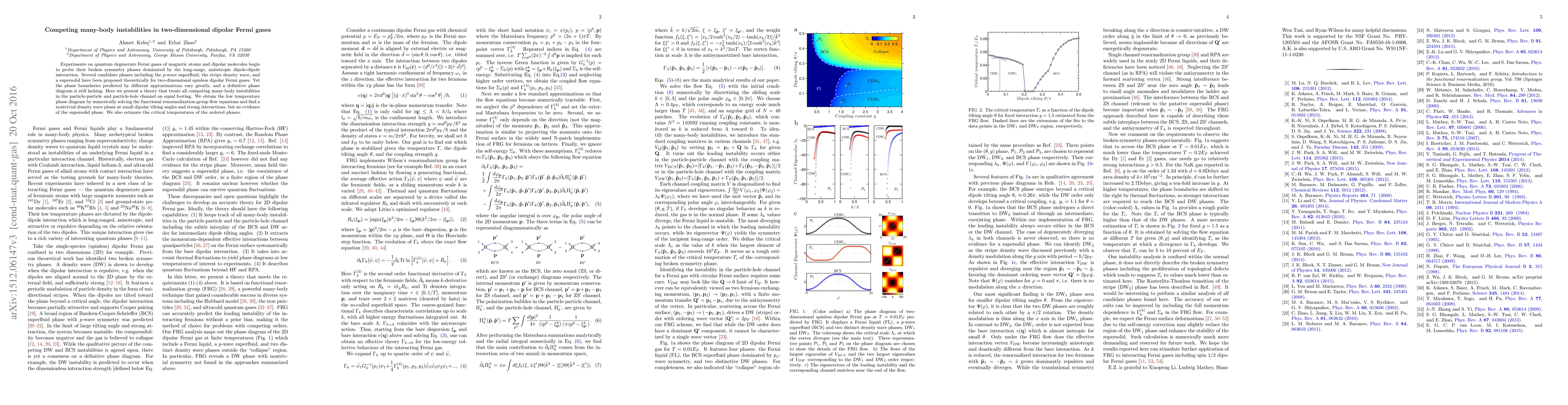 This paper develops a theory to analyze competing many-body instabilities in two-dimensional dipolar Fermi gases, revealing a nontrivial density wave phase but no supersolid phase through functional renormalization-group calculations. The study provides a refined low-temperature phase diagram and estimates critical temperatures for the identified phases.