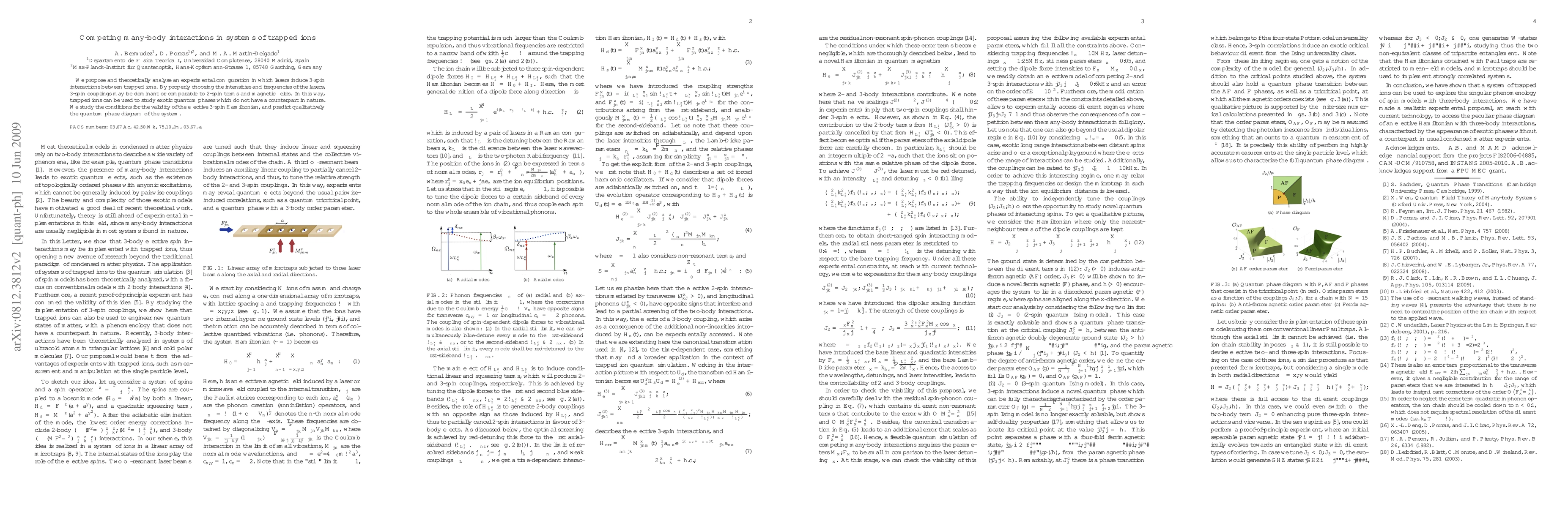 This paper proposes a theoretical framework for using lasers to induce 3-spin interactions in trapped ions, enabling the study of exotic quantum phases. It analyzes conditions for the effective 3-spin Hamiltonian and predicts the quantum phase diagram of the system.