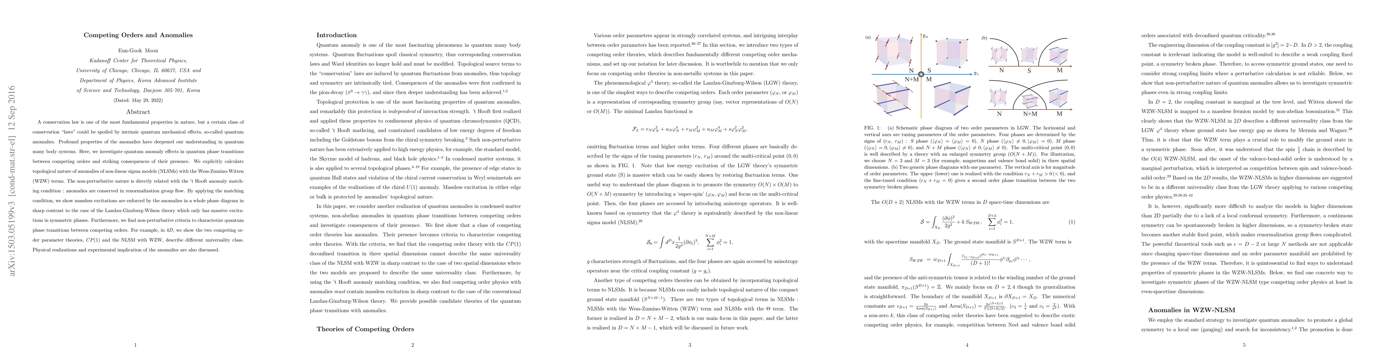 This paper explores quantum anomalies in quantum phase transitions between competing orders, demonstrating how anomalies enforce massless excitations across phase diagrams. It uses non-linear sigma models with Wess-Zumino-Witten terms to show different universality classes in competing order parameter theories, highlighting profound implications for quantum many-body systems.