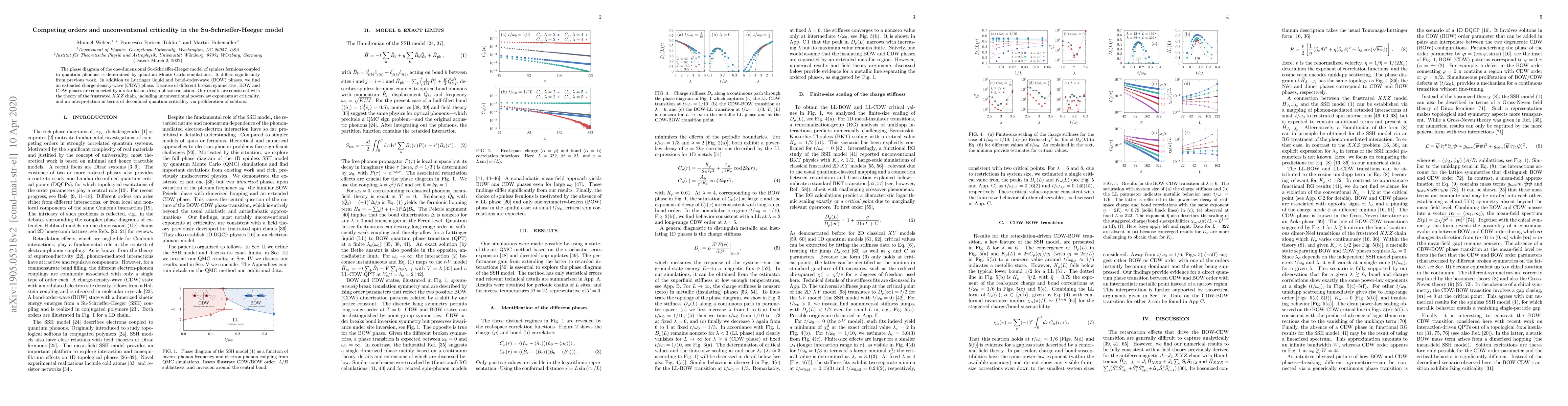 The Su-Schrieffer-Heeger model exhibits a complex phase diagram with Luttinger liquid, bond-order-wave, and extended charge-density-wave phases, revealing a retardation-driven transition and unconventional criticality characterized by power-law exponents, consistent with deconfined quantum criticality.