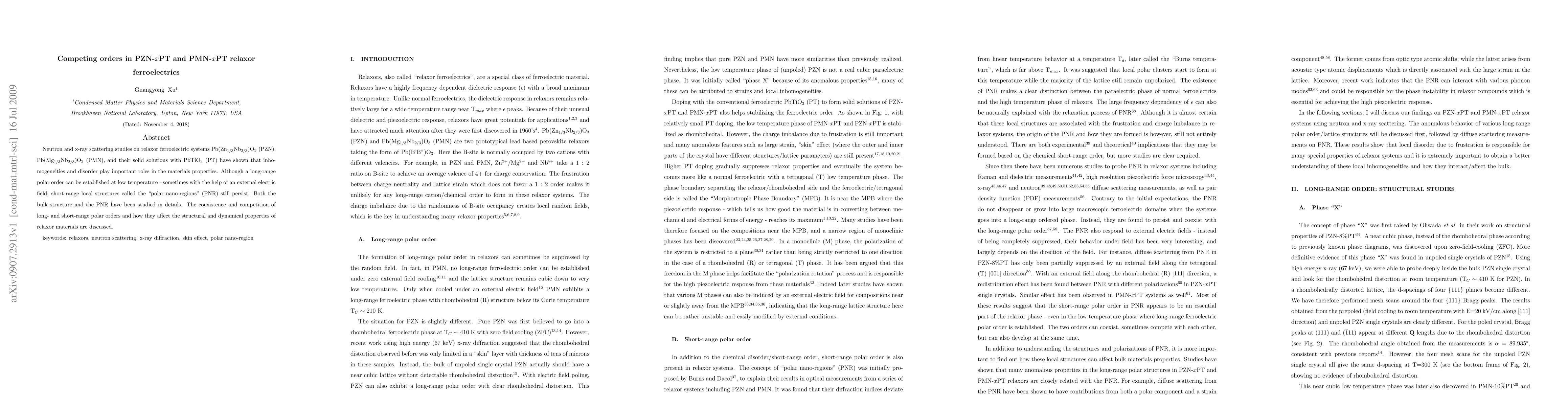 This paper investigates the structural properties of PZN-xPT and PMN-xPT relaxor ferroelectrics using neutron and x-ray scattering. It reveals that despite long-range polar order at low temperatures, short-range "polar nano-regions" persist, highlighting the competition between different polar orders and their impact on material properties.