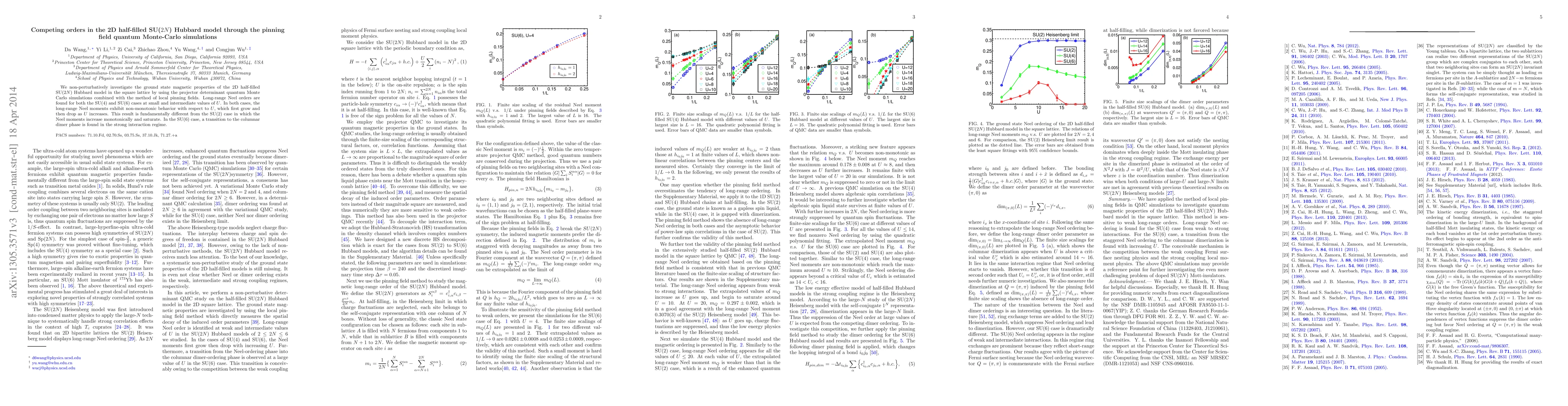 We non-perturbatively investigate the ground state magnetic properties of the 2D half-filled SU($2N$) Hubbard model in the square lattice by using the projector determinant quantum Monte Carlo simulations combined with the method of local pinning fields. Long-range Neel orders are found for both the SU(4) and SU(6) cases at small and intermediate values of $U$. In both cases, the long-range Neel moments exhibit non-monotonic behavior with respect to $U$, which first grow and then drop as $U$ increases. This result is fundamentally different from the SU(2) case in which the Neel moments increase monotonically and saturate. In the SU(6) case, a transition to the columnar dimer phase is found in the strong interaction regime.