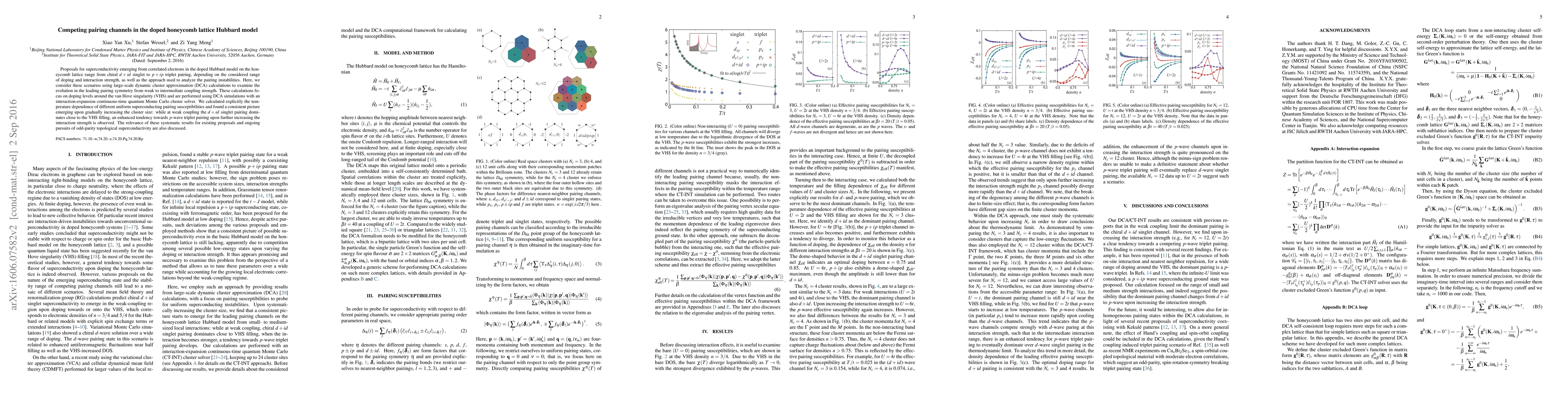 This paper investigates the pairing mechanisms in the doped honeycomb lattice Hubbard model, finding that $d+id$ singlet pairing dominates near the van Hove singularity, while $p+ip$ triplet pairing becomes more prominent with increased interaction strength. The study uses large-scale dynamic cluster approximation calculations to explore these competing pairing channels.