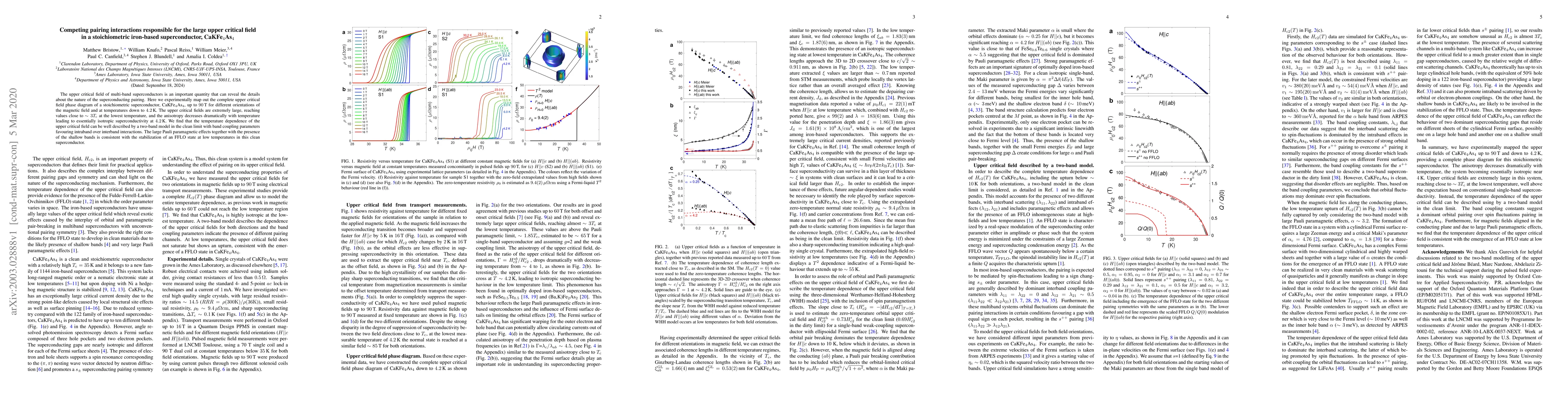Researchers mapped the complete upper critical field phase diagram of a stoichiometric iron-based superconductor CaKFe$_4$As$_4$, revealing extremely large fields that decrease dramatically with temperature.