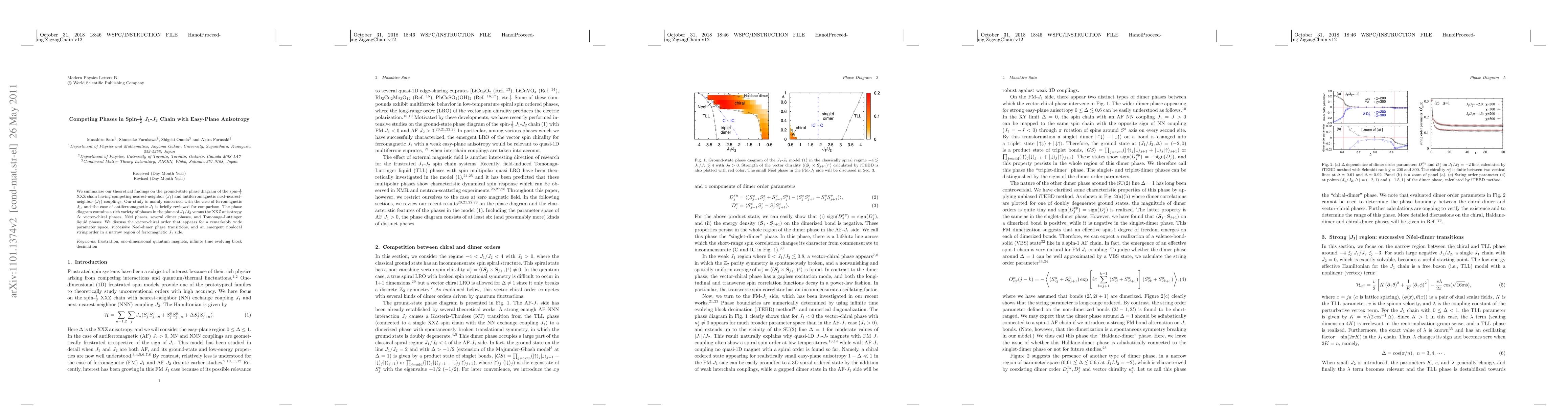 Researchers studied a chain with competing spin interactions, finding diverse phases including vector-chiral order, Néel phases, dimer phases, and Tomonaga-Luttinger liquid phases, depending on the ratio of J1 to J2 and anisotropy parameters.