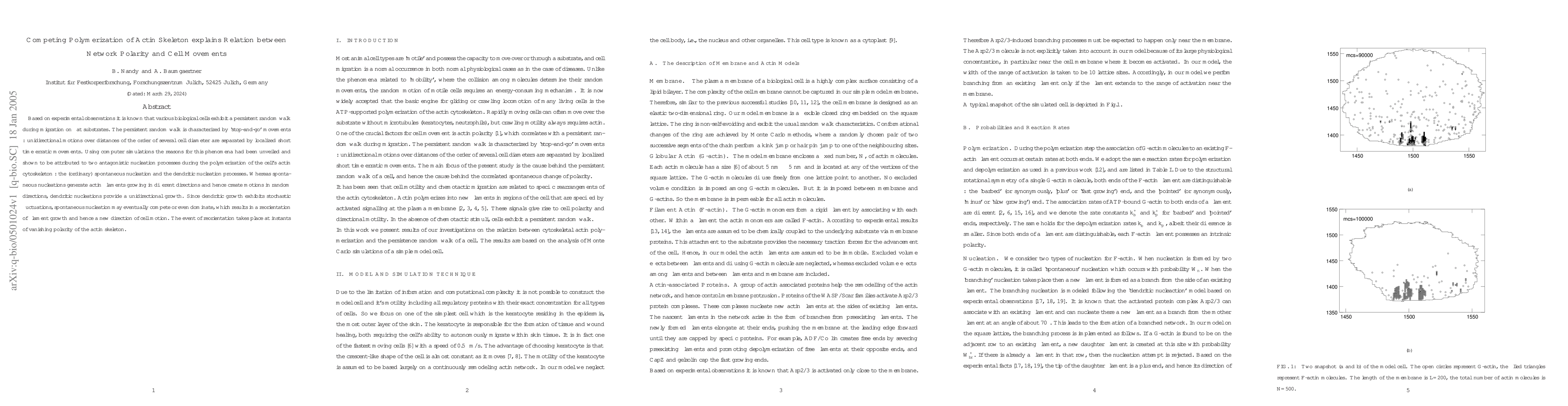 This paper reveals that cell migration's persistent random walk is due to competing polymerization processes in the actin cytoskeleton: spontaneous nucleation causes random motion, while dendritic nucleation induces directional movement. The balance between these processes determines the polarity and directionality of cell movement.