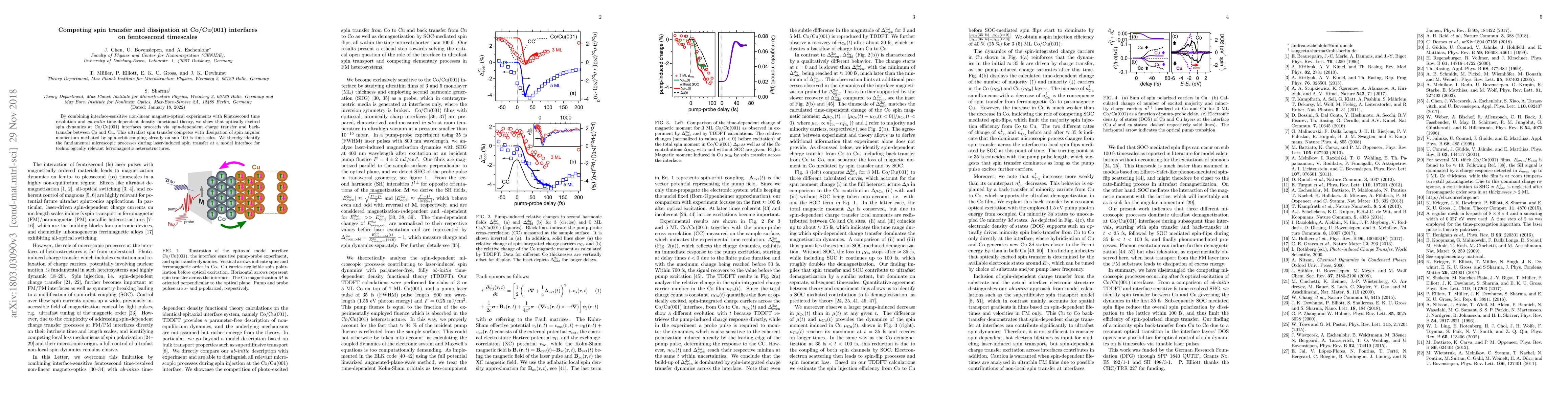 Researchers studied spin transfer at Co/Cu(001) interfaces using femtosecond timescales, finding that spin dynamics involve charge transfer between metals and competing with dissipation via spin-orbit coupling.
