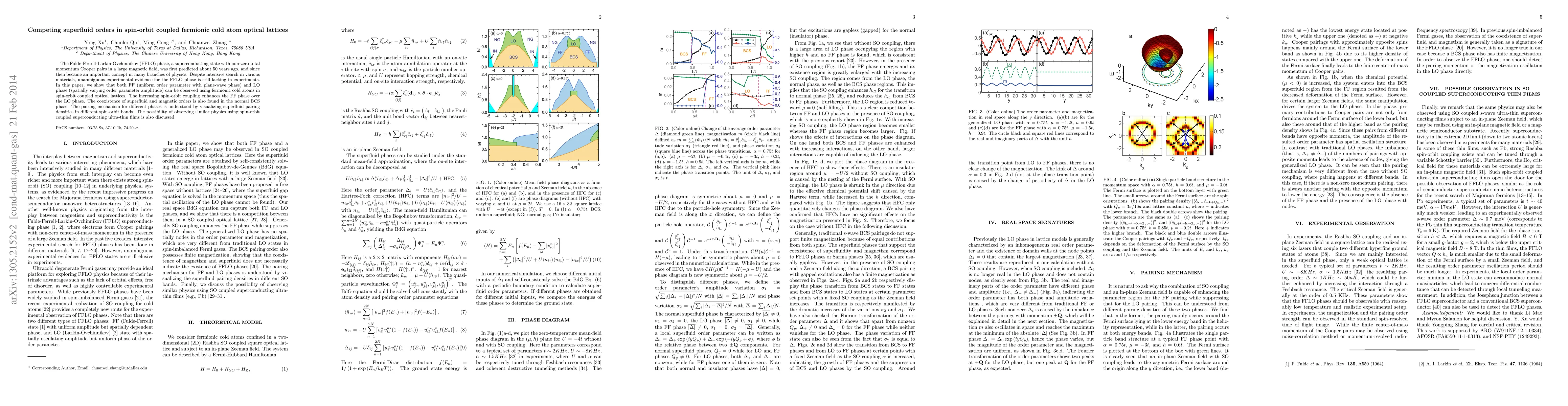 This paper demonstrates the observation of both Fulde-Ferrell and Larkin-Ovchinnikov phases in spin-orbit coupled fermionic cold atoms within optical lattices, revealing how increasing spin-orbit coupling favors the Fulde-Ferrell phase. It also highlights the coexistence of superfluid and magnetic orders in the BCS phase.