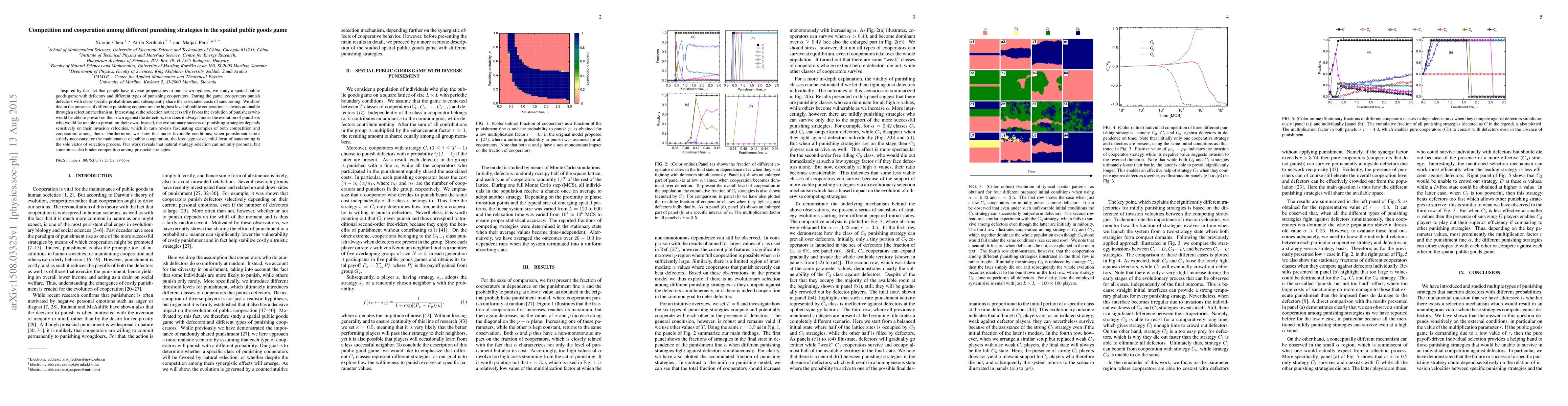Inspired by the fact that people have diverse propensities to punish wrongdoers, we study a spatial public goods game with defectors and different types of punishing cooperators. During the game, cooperators punish defectors with class-specific probabilities and subsequently share the associated costs of sanctioning. We show that in the presence of different punishing cooperators the highest level of public cooperation is always attainable through a selection mechanism. Interestingly, the selection not necessarily favors the evolution of punishers who would be able to prevail on their own against the defectors, nor does it always hinder the evolution of punishers who would be unable to prevail on their own. Instead, the evolutionary success of punishing strategies depends sensitively on their invasion velocities, which in turn reveals fascinating examples of both competition and cooperation among them. Furthermore, we show that under favorable conditions, when punishment is not strictly necessary for the maintenance of public cooperation, the less aggressive, mild form of sanctioning is the sole victor of selection process. Our work reveals that natural strategy selection can not only promote, but sometimes also hinder competition among prosocial strategies.