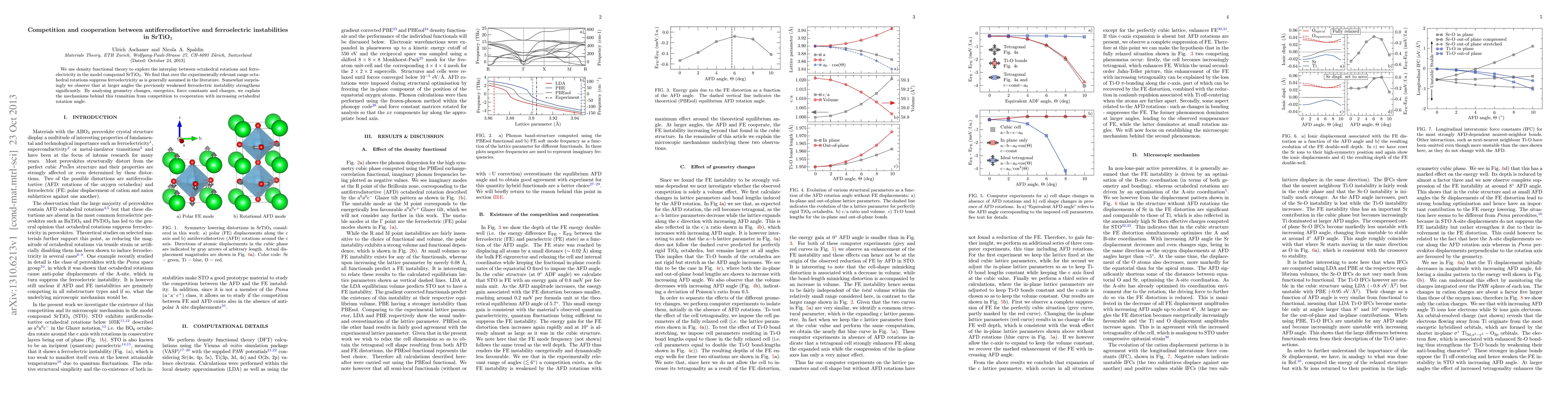 This study uses density functional theory to investigate the relationship between octahedral rotations and ferroelectricity in SrTiO$_3$, finding that rotations initially suppress ferroelectricity but at larger angles significantly enhance it, revealing a transition from competition to cooperation.