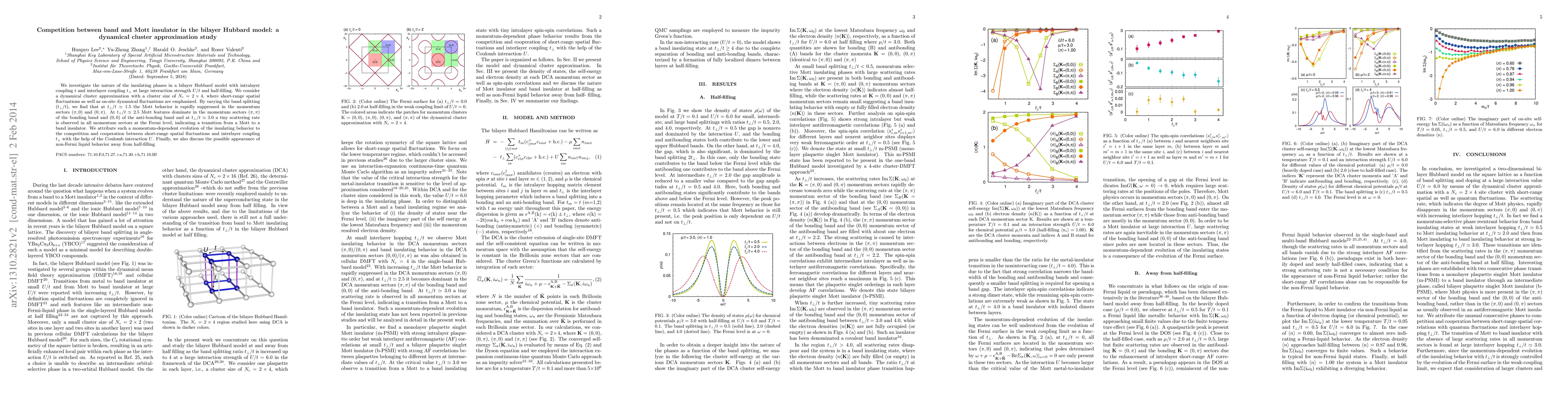 This study uses dynamical cluster approximation to explore the interplay between band and Mott insulator phases in a bilayer Hubbard model, revealing that varying interlayer coupling leads to a transition from Mott to band insulating behavior, driven by competition between spatial and dynamical fluctuations and interlayer coupling. Non-Fermi liquid behavior is also suggested at non-half-filling.