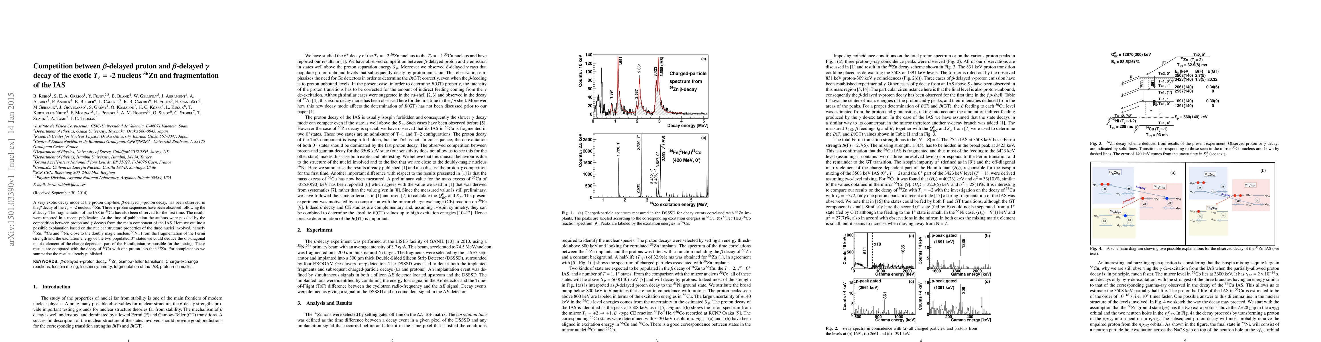 This paper investigates the competition between $\beta$-delayed proton and $\gamma$ decay in the exotic nucleus $^{56}$Zn, observing three $\gamma$-proton sequences and the fragmentation of the isomeric state (IAS) in $^{56}$Cu. The authors propose a nuclear structure explanation based on the properties of $^{56}$Zn, $^{56}$Cu, and $^{55}$Ni, highlighting the role of the charge-dependent Hamiltonian in the decay dynamics.