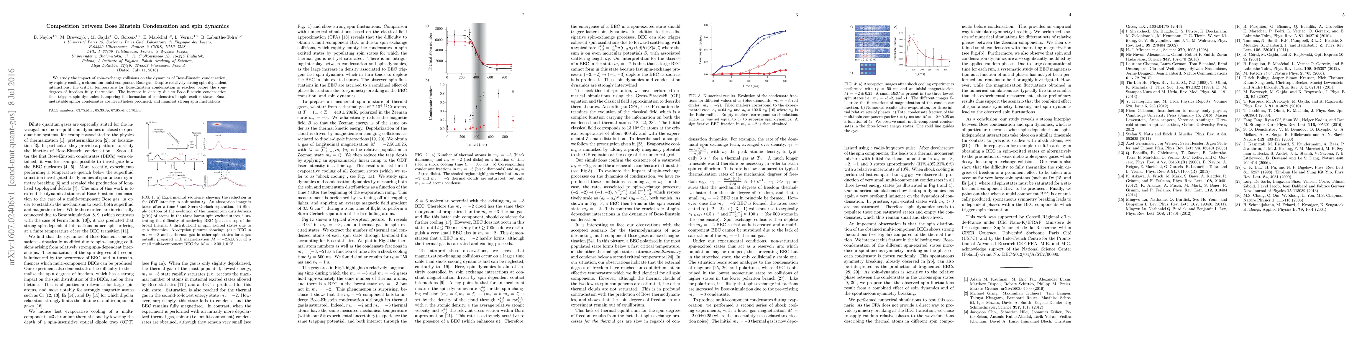 This study investigates the interplay between Bose-Einstein condensation and spin dynamics in a chromium multi-component Bose gas, revealing that spin-exchange collisions hinder condensate formation in spin excited states despite strong spin-dependent interactions. Small metastable spinor condensates with significant spin fluctuations are produced.