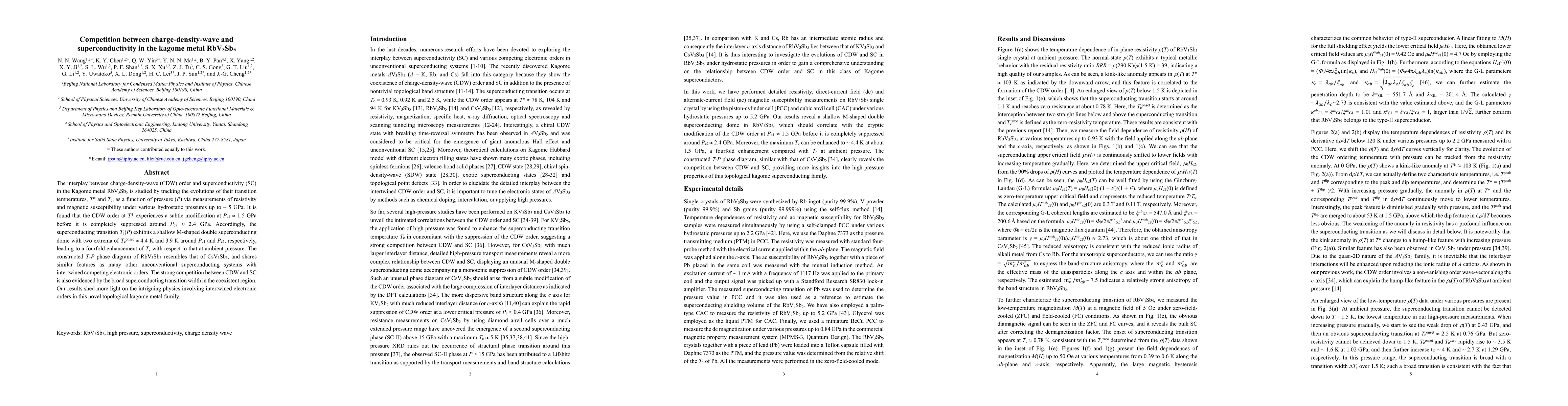 This study investigates the competition between charge-density-wave (CDW) and superconductivity (SC) in RbV3Sb5 under pressure, revealing that CDW is suppressed at ~2.4 GPa, leading to a fourfold enhancement of SC transition temperature. The T-P phase diagram shows a double superconducting dome, highlighting the strong interplay between competing electronic orders.