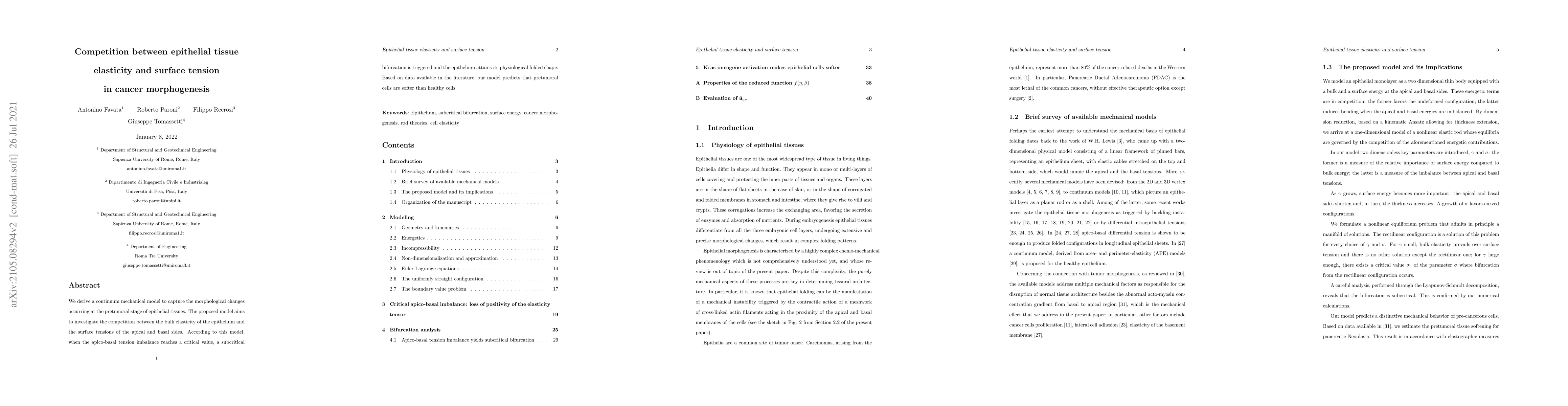 A new model predicts that cancer cells are softer than healthy cells due to competition between epithelial elasticity and surface tension, leading to the formation of a folded shape in epithelial tissues.