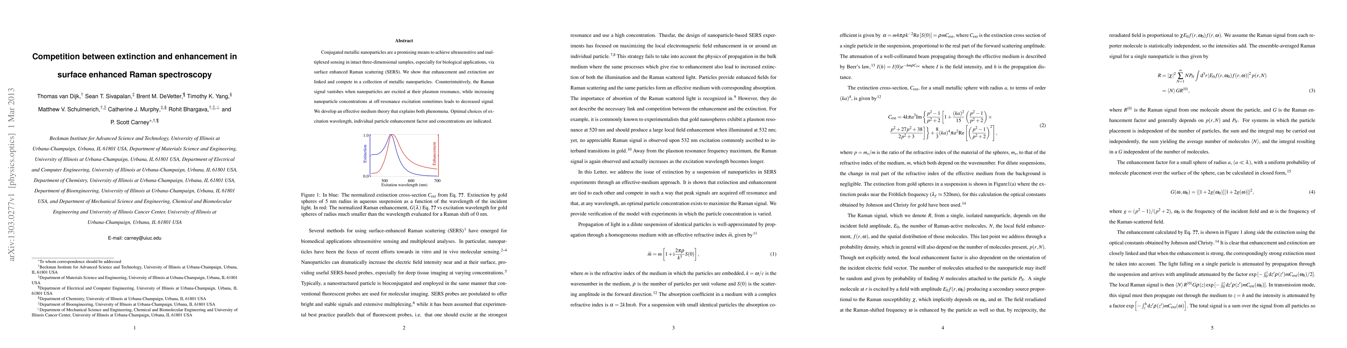 This paper explores the competition between enhancement and extinction in surface enhanced Raman spectroscopy (SERS) using conjugated metallic nanoparticles. It reveals that Raman signal vanishes at plasmon resonance and sometimes decreases with higher nanoparticle concentrations, explained through an effective medium theory, indicating optimal conditions for SERS.