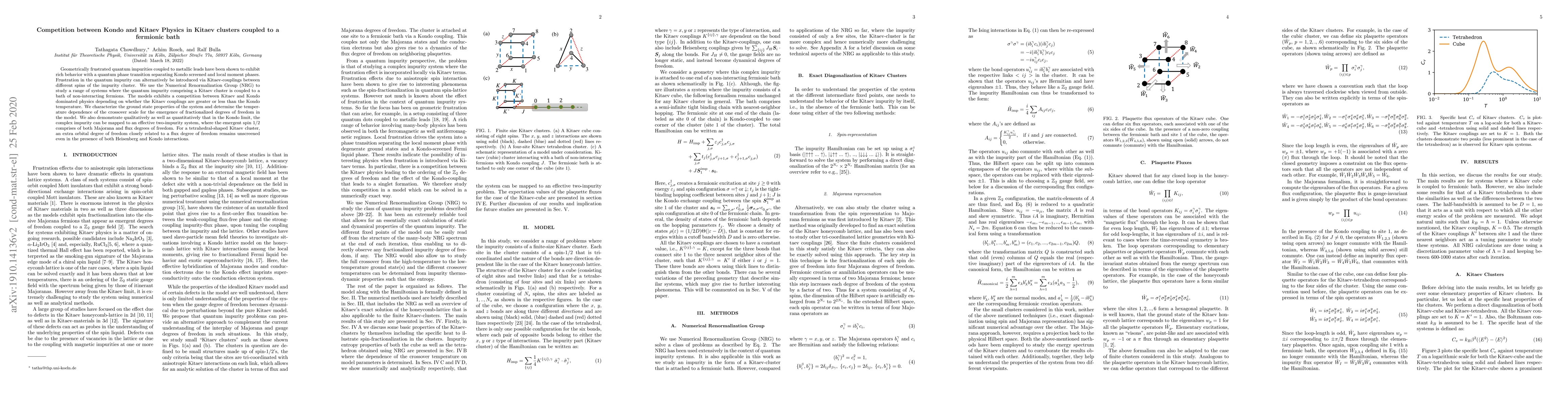 Geometrically frustrated quantum impurities coupled to metallic leads have been shown to exhibit rich behavior with a quantum phase transition separating Kondo screened and local moment phases. Frustration in the quantum impurity can alternatively be introduced via Kitaev-couplings between different spins of the impurity cluster. We use the Numerical Renormalization Group (NRG) to study a range of systems where the quantum impurity comprising a Kitaev cluster is coupled to a bath of non-interacting fermions. The models exhibits a competition between Kitaev and Kondo dominated physics depending on whether the Kitaev couplings are greater or less than the Kondo temperature. We characterize the ground state properties of the system and determine the temperature dependence of the crossover scale for the emergence of fractionalized degrees of freedom in the model. We also demonstrate qualitatively as well as quantitatively that in the Kondo limit, the complex impurity can be mapped to an effective two-impurity system, where the emergent spin $1/2$ comprises of both Majorana and flux degrees of freedom. For a tetrahedral-shaped Kitaev cluster, an extra orbital degree of freedom closely related to a flux degree of freedom remains unscreened even in the presence of both Heisenberg and Kondo interactions.