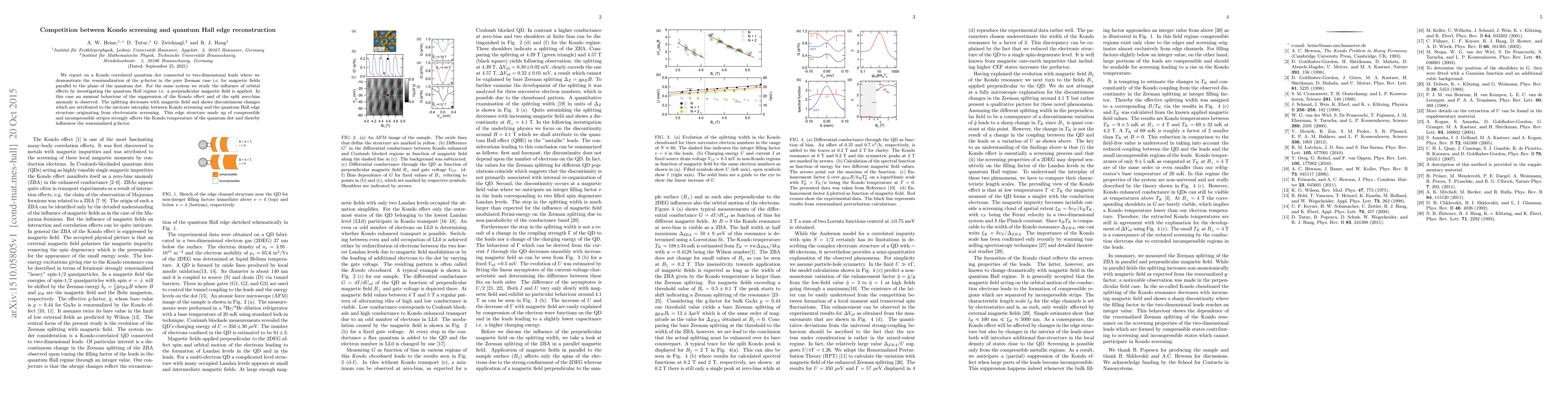 This paper investigates a Kondo correlated quantum dot connected to two-dimensional leads, revealing the suppression of the Kondo effect and split zero-bias anomaly under perpendicular magnetic fields, attributed to the interplay between Kondo screening and quantum Hall edge reconstruction. The quantum Hall edge structure affects the Kondo temperature and renormalized g-factor.