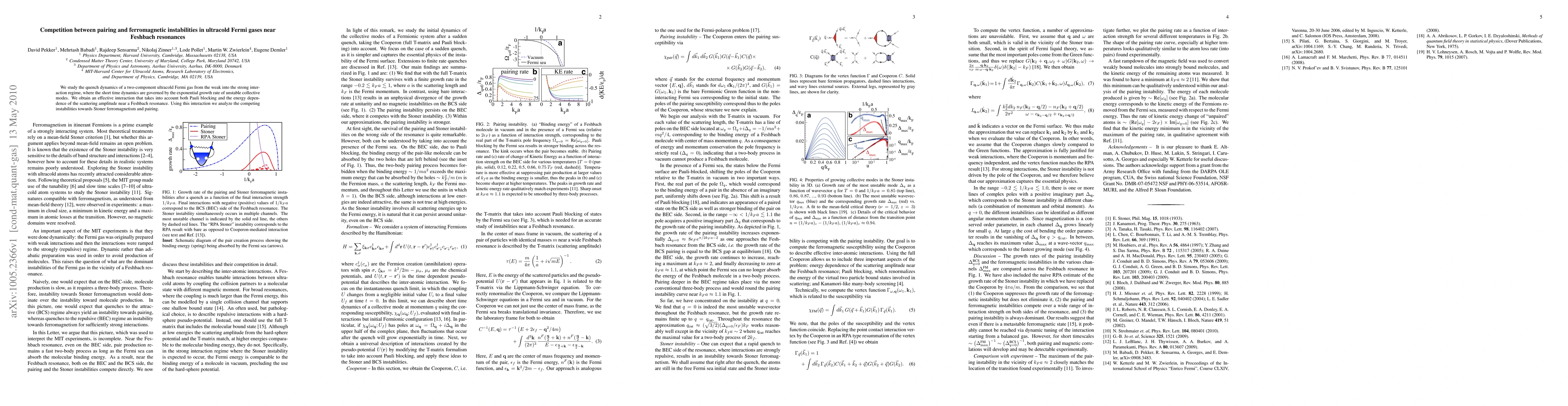 This paper investigates the dynamics of ultracold Fermi gases transitioning from weak to strong interaction regimes near Feshbach resonances, focusing on the competition between Stoner ferromagnetism and pairing instabilities, and develops an effective interaction model to analyze this competition.