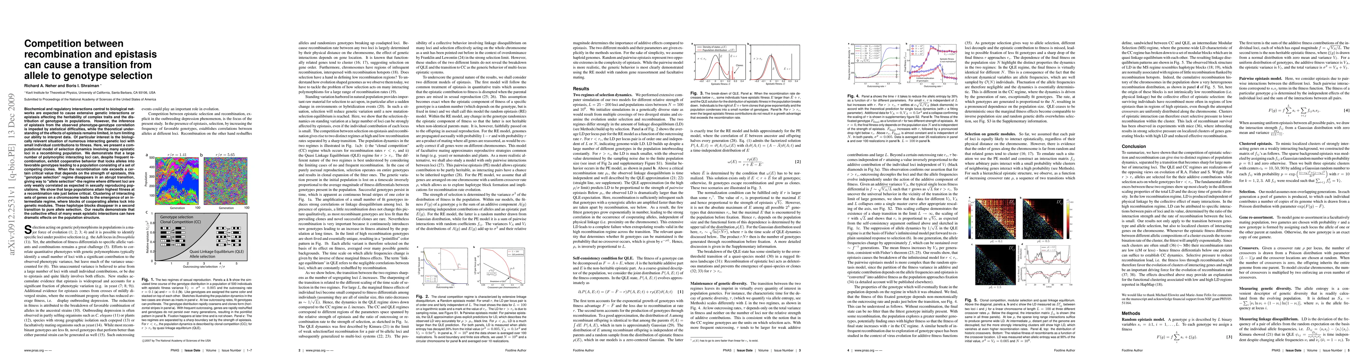 A computational model shows that competition between recombination and epistasis can cause a transition from allele to genotype selection in populations with many interacting genetic loci, leading to the emergence of competing clones.