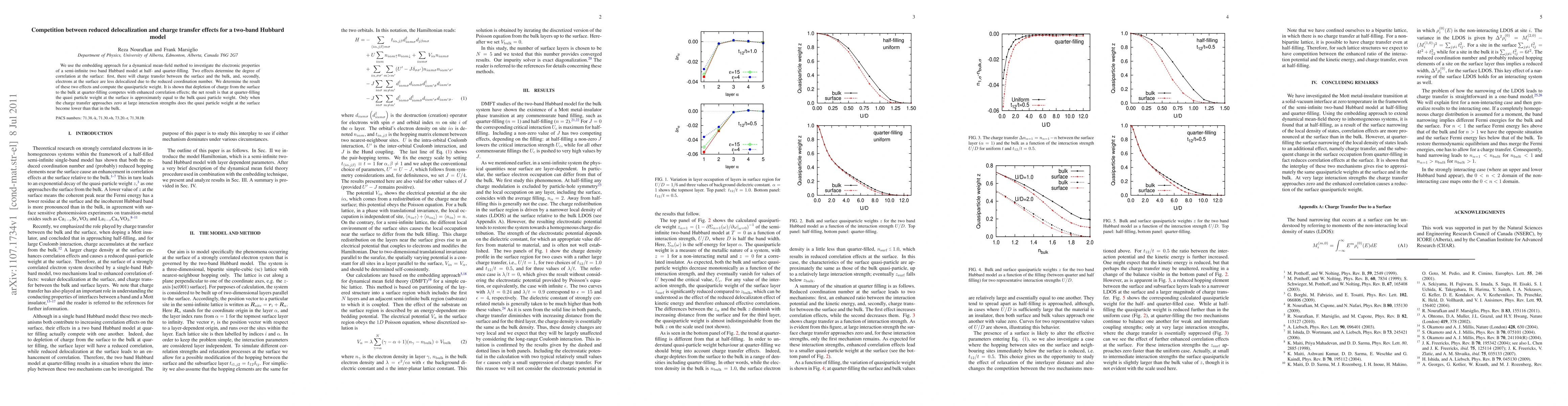 Researchers studied how two effects influence electronic properties in a semi-infinite Hubbard model: charge transfer between surface and bulk, and reduced delocalization due to coordination number. At quarter-filling, these effects balance each other, resulting in similar quasi-particle weights at the surface and bulk.