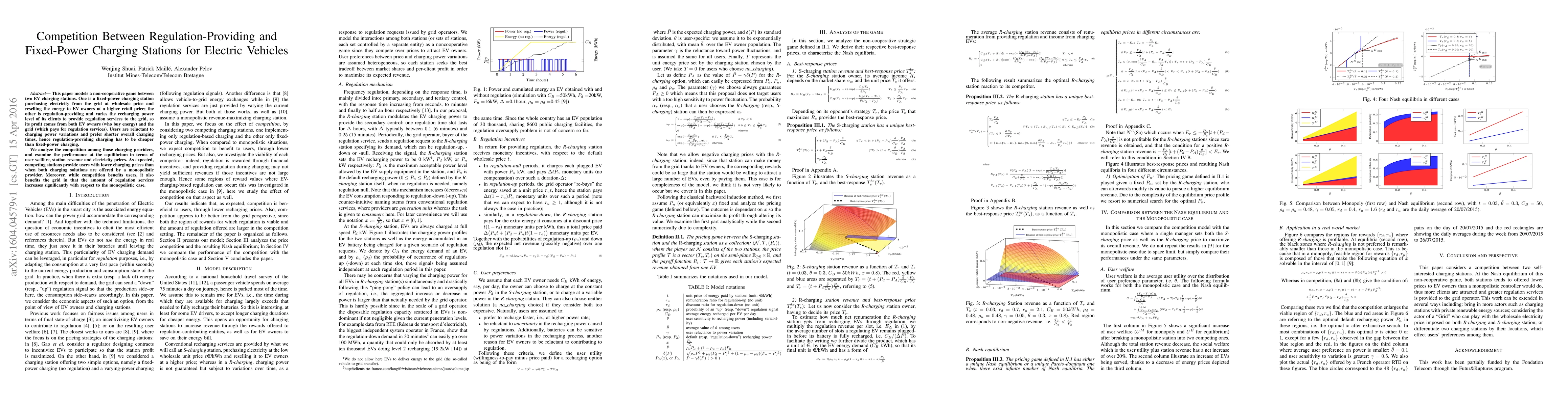 This paper models a non-cooperative game between two types of electric vehicle charging stations: fixed-power and regulation-providing. Competition benefits users and the grid, with lower charging prices and increased regulation services compared to a monopolistic provider.