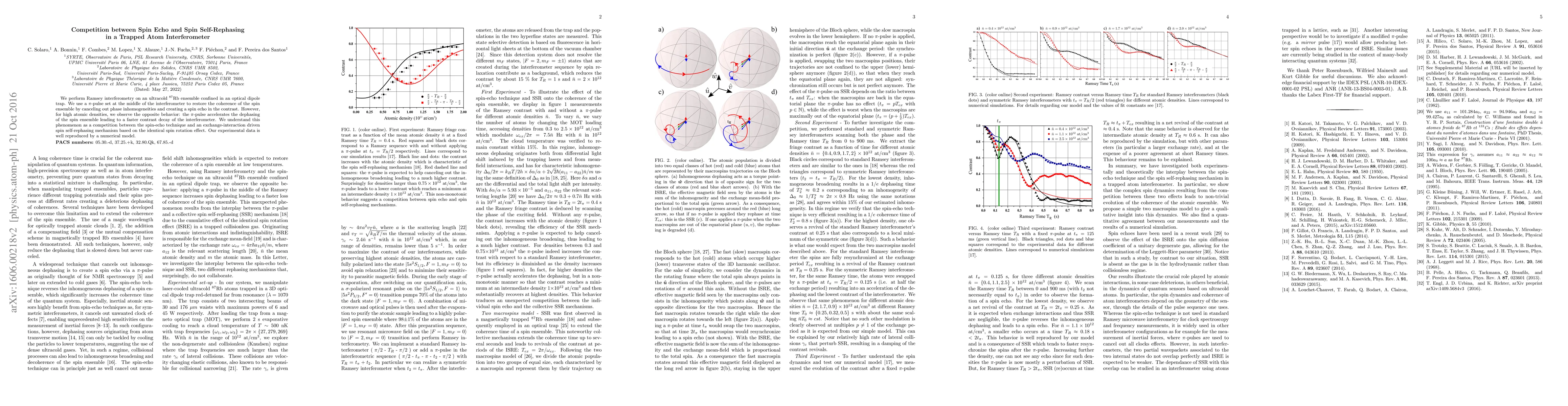 This paper investigates Ramsey interferometry on ultracold 87Rb atoms, where a π-pulse is used to create a spin echo. At high atomic densities, the π-pulse instead accelerates dephasing, revealing a competition between spin echo and spin self-rephasing driven by exchange interactions, which is well modeled numerically.