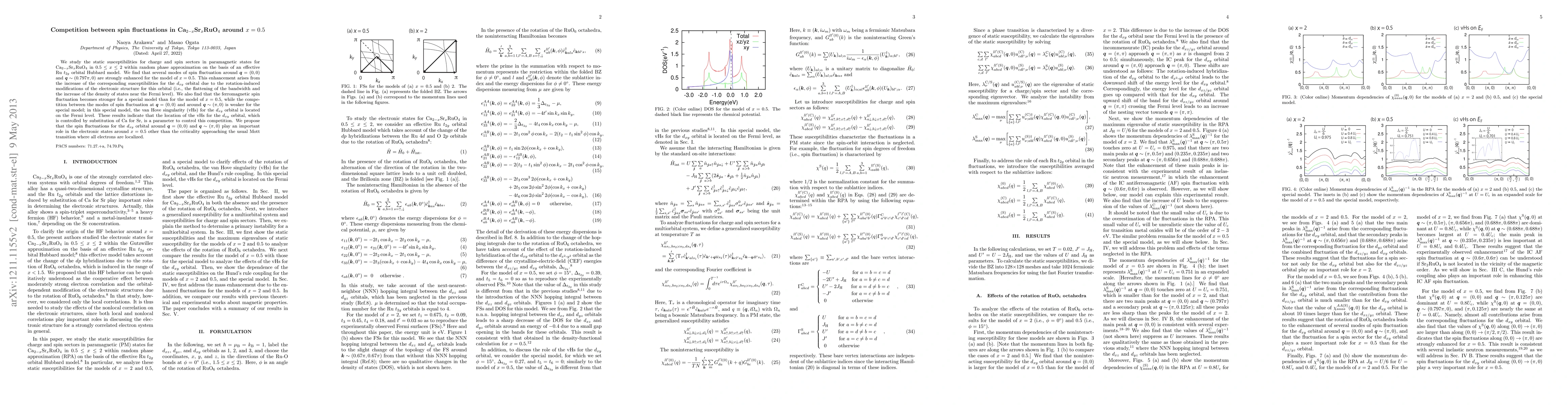 This study investigates the competition between spin fluctuations in Ca$_{2-x}$Sr$_{x}$RuO$_{4}$ around $x=0.5$, revealing enhanced spin fluctuations due to structural changes in the $d_{xy}$ orbital. The van Hove singularity's position near the Fermi level is identified as a critical factor influencing this competition.