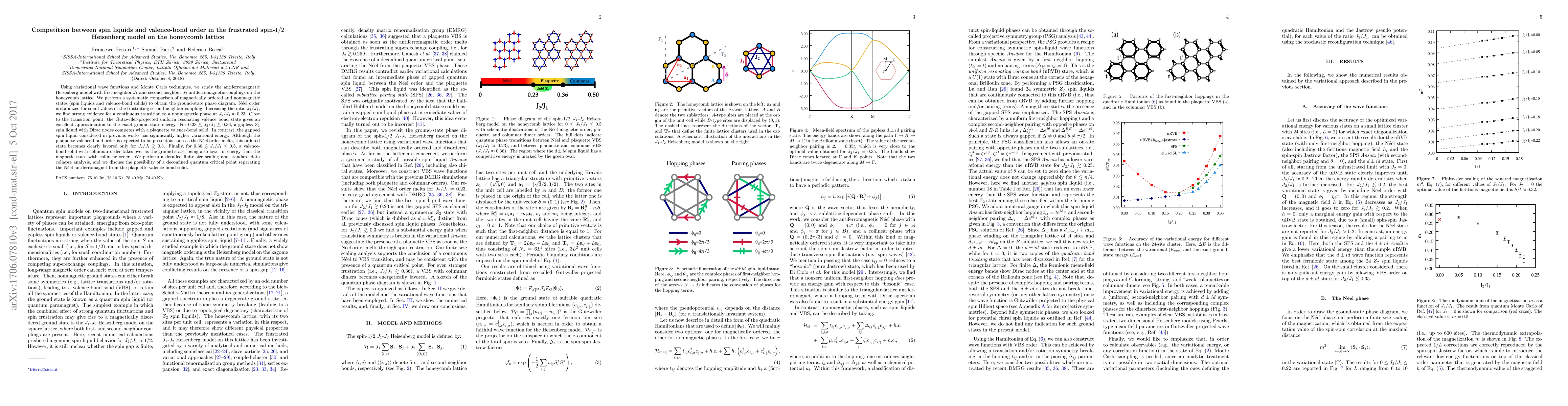 This paper investigates the competition between spin liquids and valence-bond order in the frustrated spin-$1/2$ Heisenberg model on the honeycomb lattice, revealing a transition to a nonmagnetic phase and identifying the ground-state phase diagram through variational and Monte Carlo methods. The study finds that a gapless $Z_2$ spin liquid competes with a plaquette valence-bond solid, while a columnar valence-bond solid becomes the ground state for larger second-neighbor couplings.