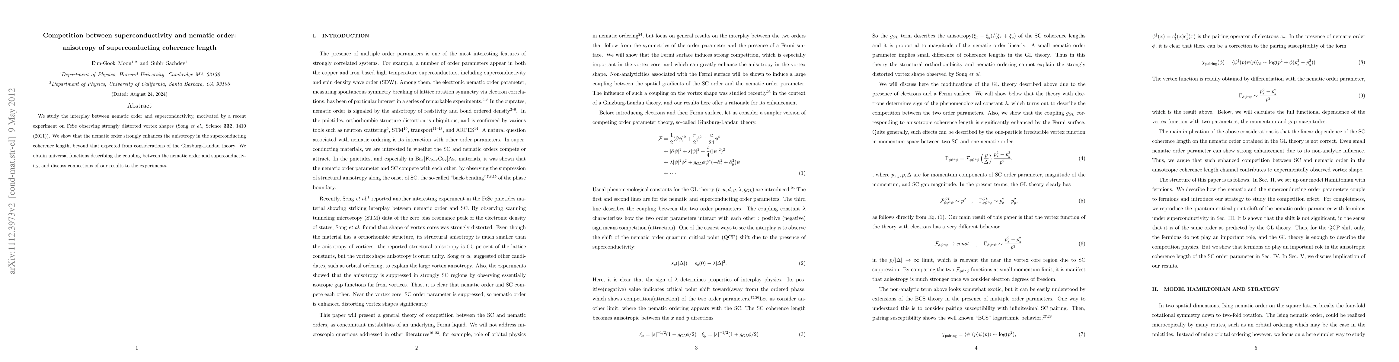 This research investigates the interaction between nematic order and superconductivity, revealing that nematic order significantly enhances the anisotropy in the superconducting coherence length. The study provides universal functions describing this coupling and connects its findings to experimental observations of distorted vortex shapes in FeSe.