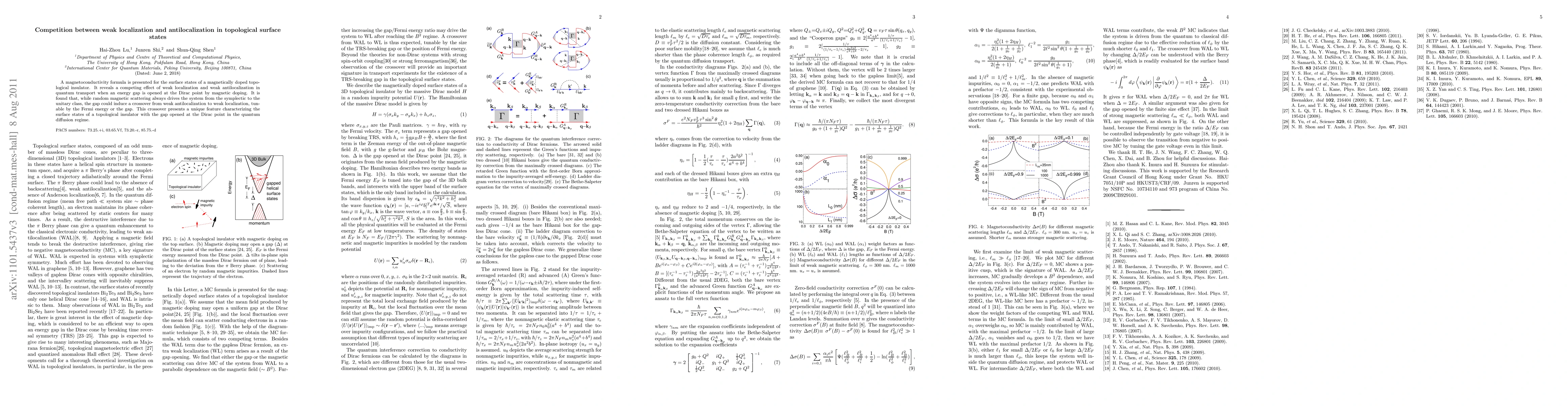 This paper presents a magnetoconductivity formula for topological insulator surface states, showing competition between weak localization and antilocalization. It reveals that while magnetic doping induces a transition from symplectic to unitary class, an energy gap can trigger a tunable crossover from antilocalization to localization, depending on Fermi energy or gap size.