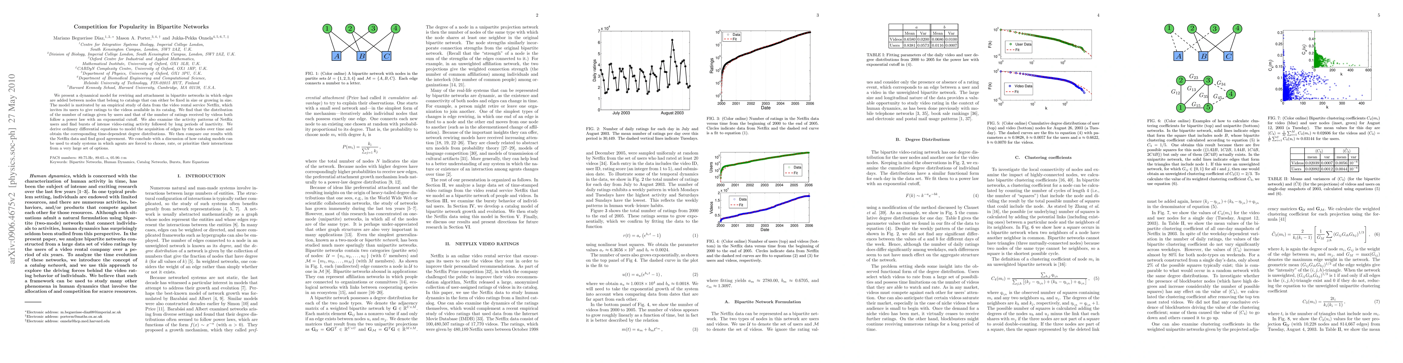 We present a dynamical model for rewiring and attachment in bipartite networks in which edges are added between nodes that belong to catalogs that can either be fixed in size or growing in size. The model is motivated by an empirical study of data from the video rental service Netflix, which invites its users to give ratings to the videos available in its catalog. We find that the distribution of the number of ratings given by users and that of the number of ratings received by videos both follow a power law with an exponential cutoff. We also examine the activity patterns of Netflix users and find bursts of intense video-rating activity followed by long periods of inactivity. We derive ordinary differential equations to model the acquisition of edges by the nodes over time and obtain the corresponding time-dependent degree distributions. We then compare our results with the Netflix data and find good agreement. We conclude with a discussion of how catalog models can be used to study systems in which agents are forced to choose, rate, or prioritize their interactions from a very large set of options.