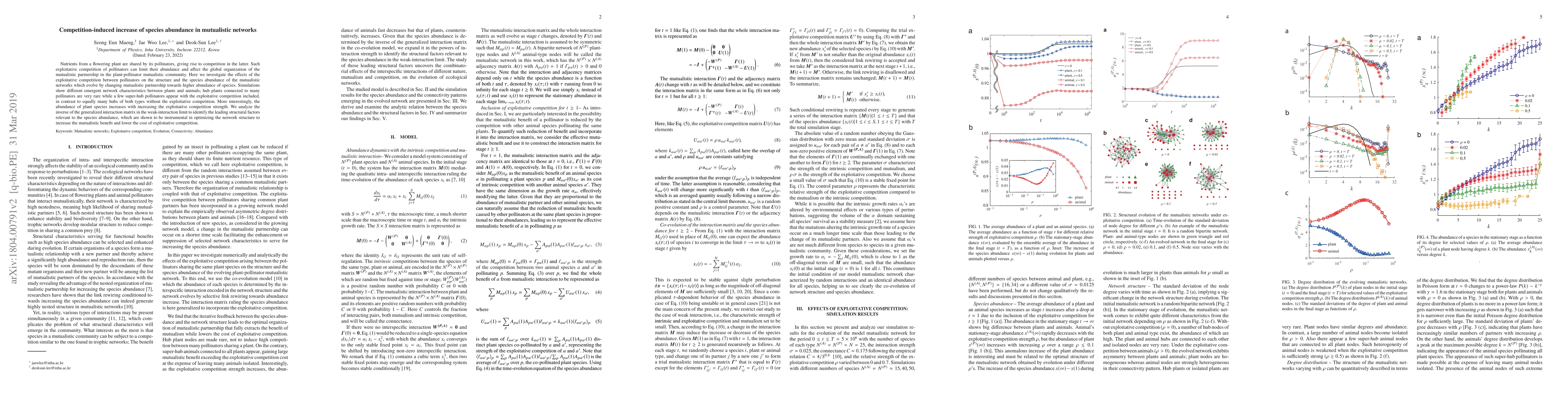 This study explores how exploitative competition among pollinators affects mutualistic networks, revealing that increased competition leads to higher abundance of plant species and the emergence of super-hub pollinators, while hub plants remain rare. The analysis identifies structural factors optimizing network benefits to mitigate competition costs.