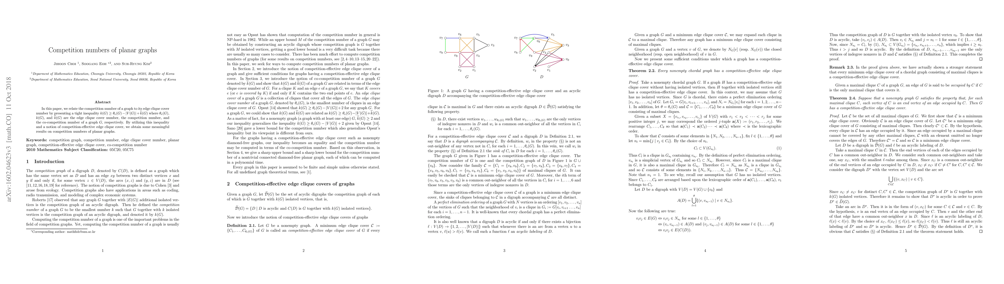 This paper establishes a tight inequality relating the competition number of a graph to its edge clique cover number, and uses this relationship to derive significant results on the competition numbers of planar graphs. The inequality is $k(G) \ge \theta_e(G)-|V(G)|+\widetilde{k}(G)$.