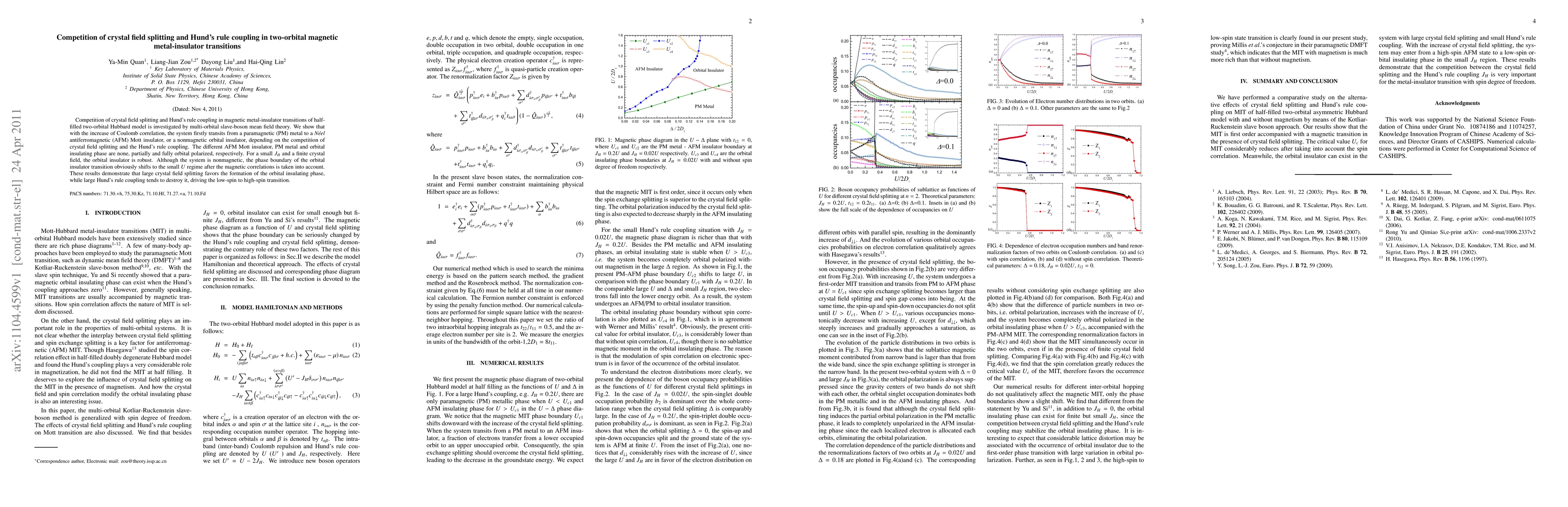 This paper investigates the interplay between crystal field splitting and Hund's rule coupling in magnetic metal-insulator transitions using multi-orbital slave-boson mean field theory. It finds that the transition depends on the balance of these factors, leading to Néel AFM Mott insulators, paramagnetic metals, or nonmagnetic orbital insulators.