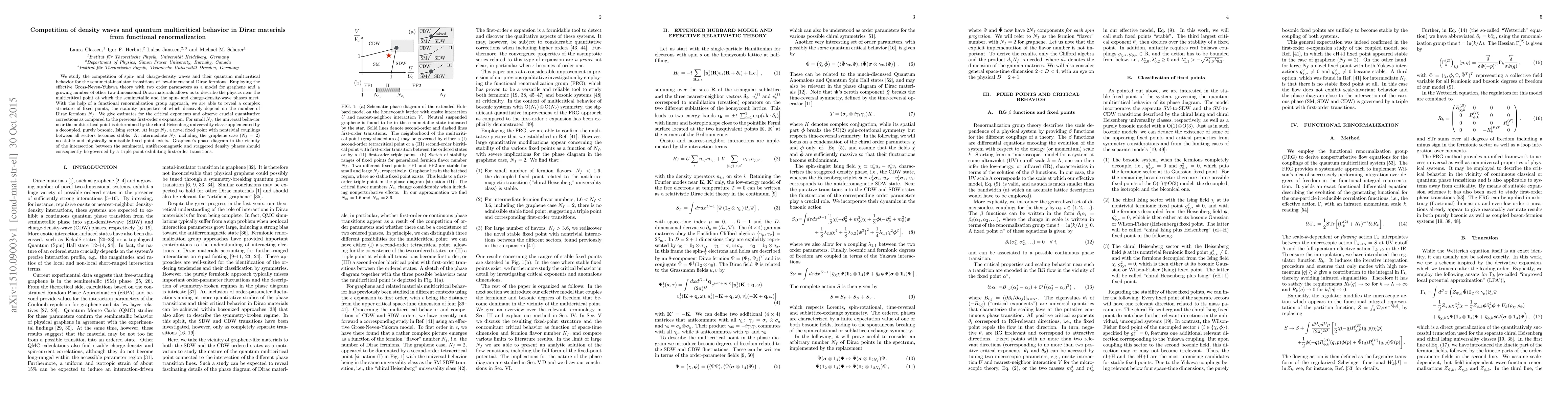 This paper investigates the interplay between spin- and charge-density waves in Dirac materials, using functional renormalization group to explore the quantum multicritical behavior near the semimetal-insulator transition. It reveals distinct fixed points and critical exponents, showing that for small numbers of Dirac fermions, the chiral Heisenberg universality class dominates, while a novel fixed point emerges with larger numbers.