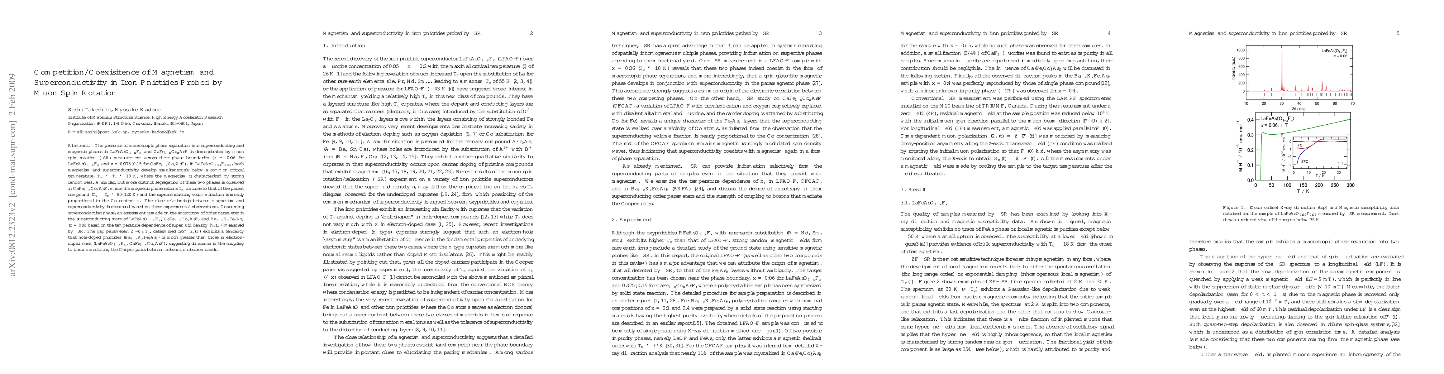 The presence of macroscopic phase separation into superconducting and magnetic phases in LaFeAsO$_{1-x}$F$_x$ (LFAOF) and CaFe$_{1-x}$Co$_x$AsF (CFCAF) is demonstrated by muon spin rotation (muSR) measurement across their phase boundaries ($x=0.06$ for LFAOF and $x=0.075$--0.15 for CFCAF). In LFAOF, both magnetism and superconductivity develop simultaneously below a common critical temperature, $T_m =~ T_c =~ 18$ K, where the magnetism is characterized by strong randomness. A similar, but more distinct segregation of these two phases is observed in CFCAF, where the magnetic phase retains $T_m$ as close to that of the parent compound ($T_c << T_m =~ 80$--120 K) and the superconducting volume fraction is proportional to the Co content $x$. The close relationship between magnetism and superconductivity is discussed based on these experimental observations. Concerning superconducting phase, an assessment is made on the anisotropy of order parameter in the superconducting state of LFAOF, CFCAF, and Ba$_{1-x}$K$_x$Fe$_2$As$_2$ (BKFA, $x=0.4$) based on the temperature dependence of superfluid density [$n_s(T)$] measured by muSR. The gap parameter, $2\Delta/k_BT_c$, determined from $n_s(T)$ exhibits a tendency that hole-doped pnictides (BKFA) is much greater than those in electron-doped ones (LFAOF, CFCAF), suggesting difference in the coupling to bosons mediating the Cooper pairs between relevant $d$ electron bands.