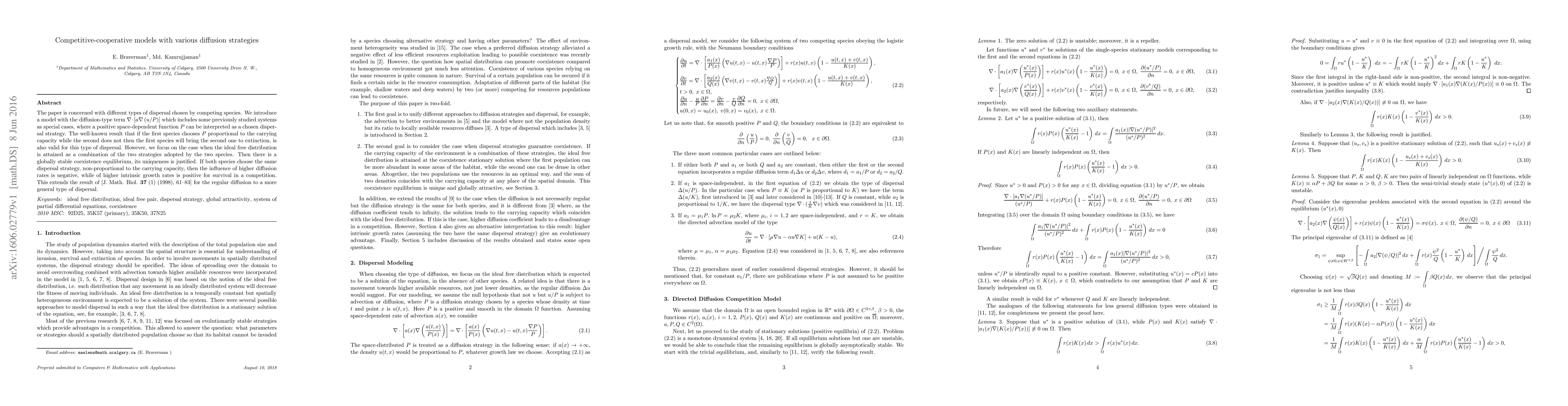 Researchers developed a model to study competitive-cooperative interactions between species with different dispersal strategies, finding that globally stable coexistence equilibria can exist in certain scenarios, while others show negative effects of increased diffusion rates or growth rates on survival.