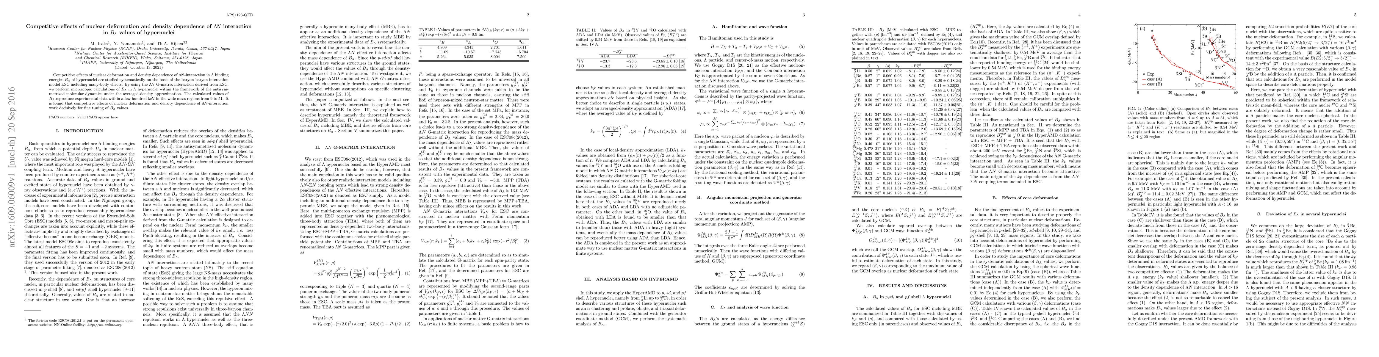 Competitive effects of nuclear deformation and density dependence of $\Lambda\!N$-interaction in $\Lambda$ binding energies $B_\Lambda$ of hypernuclei are studied systematically on the basis of the baryon-baryon interaction model ESC including many-body effects. By using the $\Lambda\!N$ G-matrix interaction derived from ESC, we perform microscopic calculations of $B_\Lambda$ in $\Lambda$ hypernuclei within the framework of the antisymmetrized molecular dynamics under the averaged-density approximation. The calculated values of $B_\Lambda$ reproduce experimental data within a few hundred keV in the wide mass regions from 9 to 51. It is found that competitive effects of nuclear deformation and density dependence of $\Lambda\!N$-interaction work decisively for fine tuning of $B_\Lambda$ values.