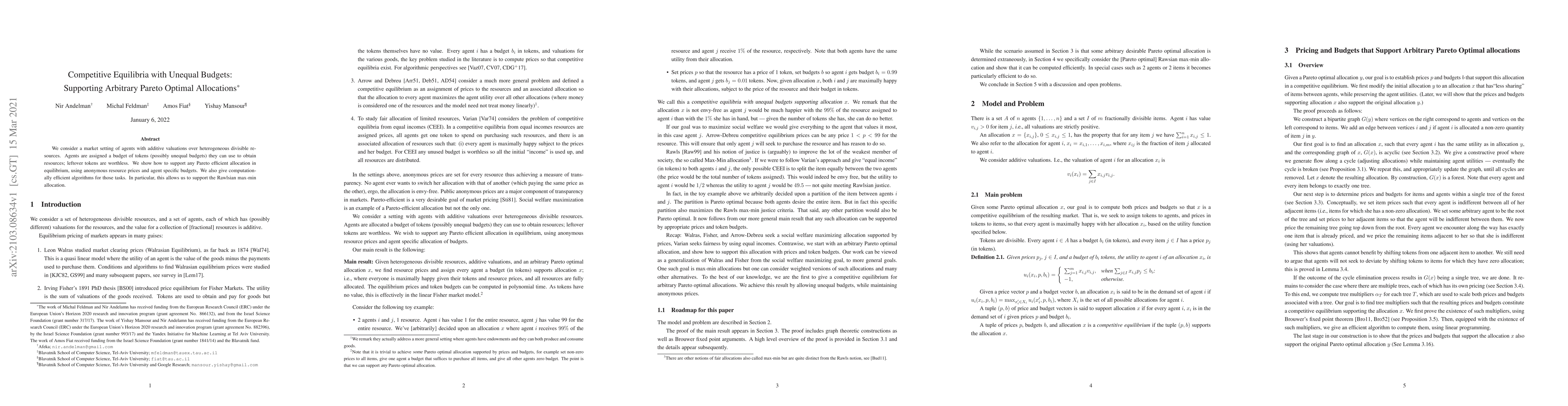 Researchers developed a method to support any Pareto-efficient allocation in equilibrium with unequal budgets using anonymous resource prices and individual budgets, enabling the Rawlsian max-min allocation.