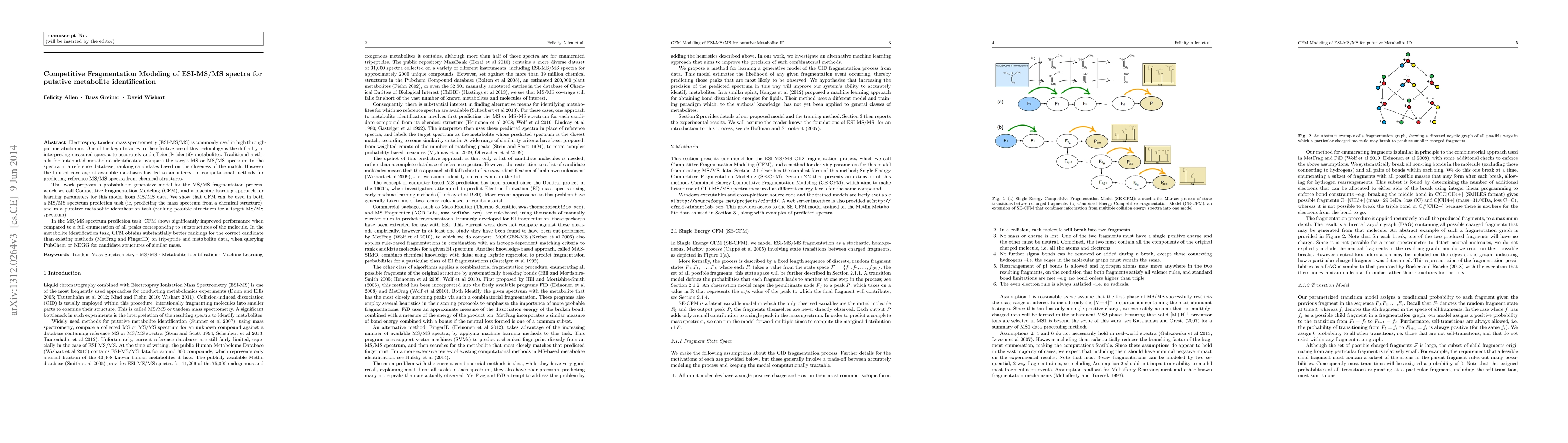 This paper introduces Competitive Fragmentation Modeling (CFM), a probabilistic generative model for predicting MS/MS spectra from chemical structures, which significantly improves both MS/MS spectrum prediction and putative metabolite identification compared to traditional methods and existing computational approaches.