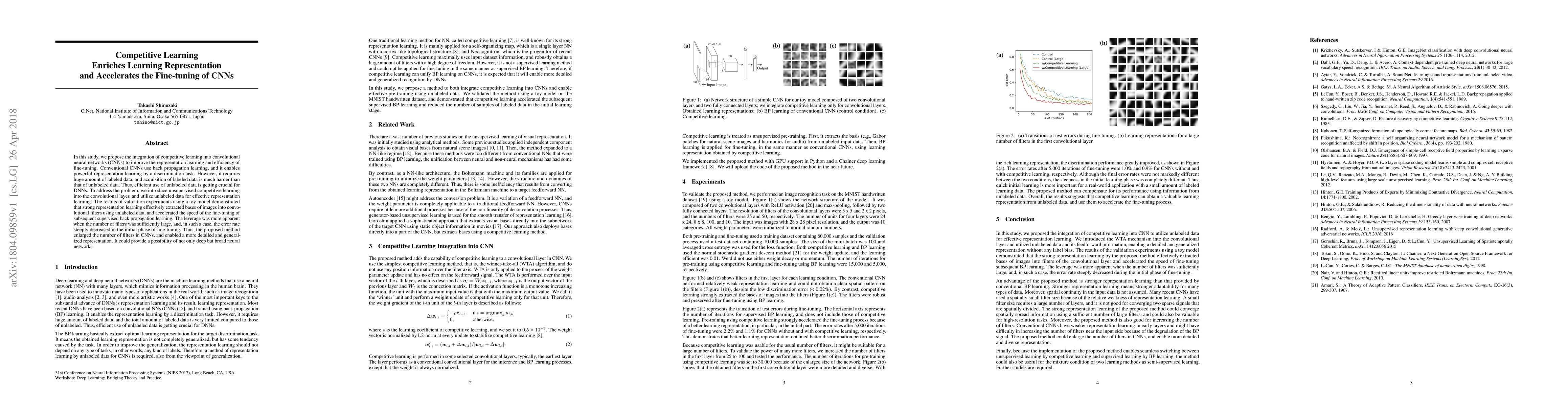 This study proposes a method to improve CNN representation learning using competitive learning, enabling efficient fine-tuning with unlabeled data.
