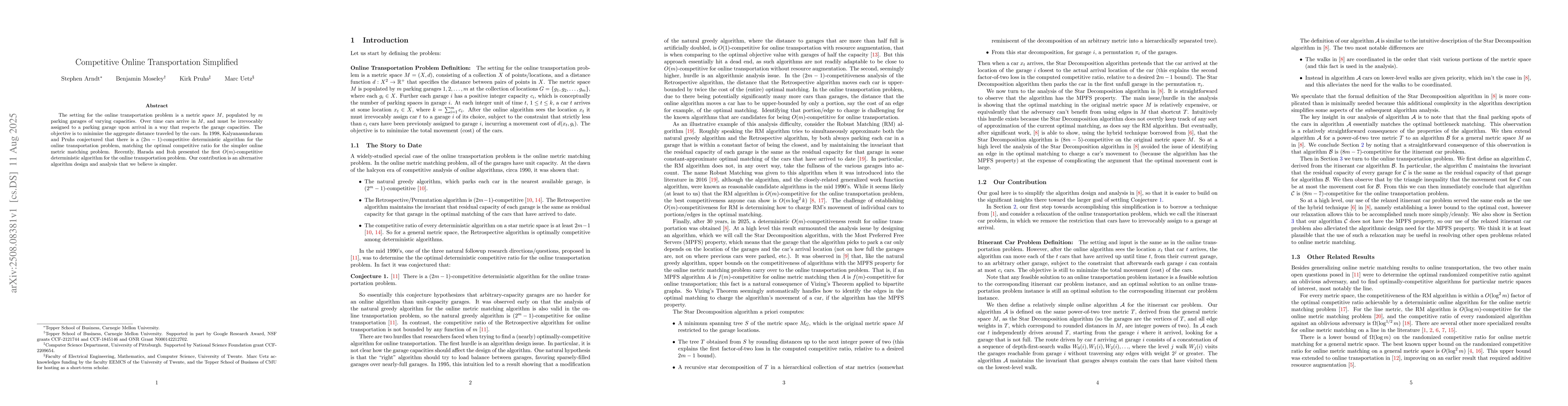 The setting for the online transportation problem is a metric space $M$, populated by $m$ parking garages of varying capacities. Over time cars arrive in $M$, and must be irrevocably assigned to a parking garage upon arrival in a way that respects the garage capacities. The objective is to minimize the aggregate distance traveled by the cars. In 1998, Kalyanasundaram and Pruhs conjectured that there is a $(2m-1)$-competitive deterministic algorithm for the online transportation problem, matching the optimal competitive ratio for the simpler online metric matching problem. Recently, Harada and Itoh presented the first $O(m)$-competitive deterministic algorithm for the online transportation problem. Our contribution is an alternative algorithm design and analysis that we believe is simpler.