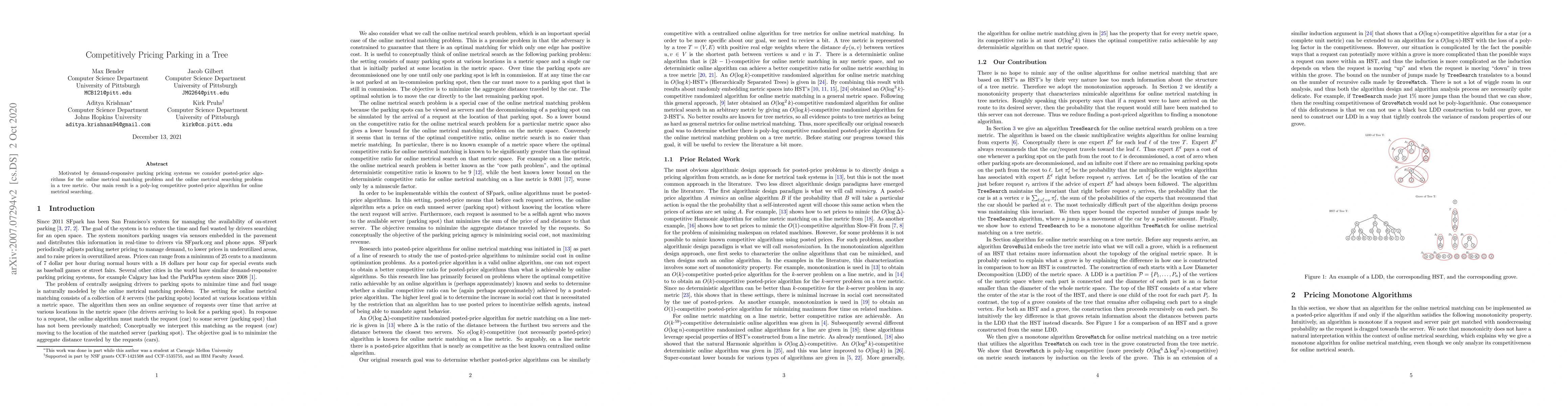 Motivated by demand-responsive parking pricing systems we consider posted-price algorithms for the online metrical matching problem and the online metrical searching problem in a tree metric. Our main result is a poly-log competitive posted-price algorithm for online metrical searching.