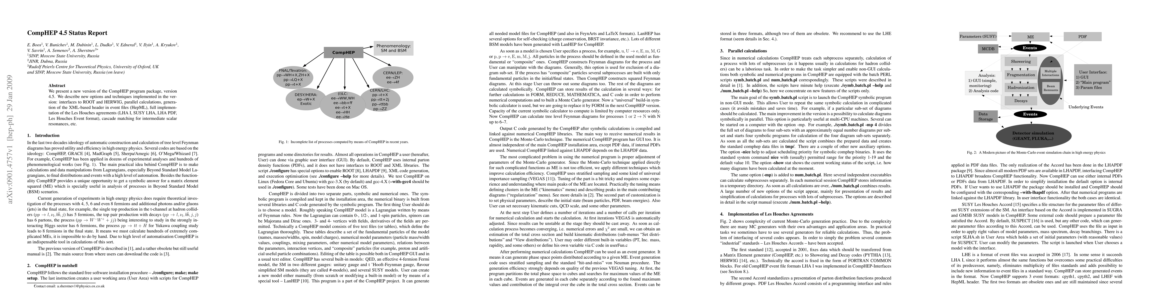 We present a new version of the CompHEP program package, version 4.5. We describe new options and techniques implemented in the version: interfaces to ROOT and HERWIG, parallel calculations, generation of the XML-based header in event files (HepML), full implementation of the Les Houches agreements (LHA I, SUSY LHA, LHA PDF, Les Houches Event format), cascade matching for intermediate scalar resonances, etc.