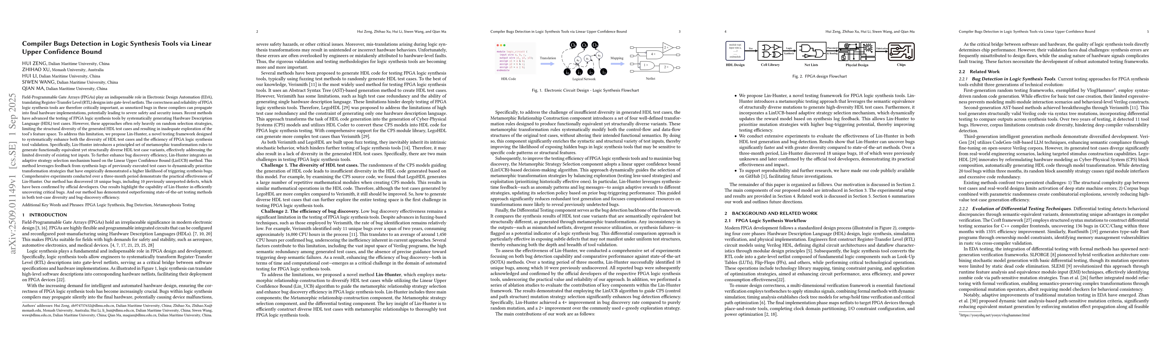 Field-Programmable Gate Arrays (FPGAs) play an indispensable role in Electronic Design Automation (EDA), translating Register-Transfer Level (RTL) designs into gate-level netlists. The correctness and reliability of FPGA logic synthesis tools are critically important, as unnoticed bugs in these tools may infect the final hardware implementations. However, recent approaches often rely heavily on random selection strategies, limiting the structural diversity of the generated HDL test cases and resulting in inadequate exploration of the tool's feature space. To address this limitation, we propose Lin-Hunter, a novel testing framework designed to systematically enhance the diversity of HDL test cases and the efficiency of FPGA logic synthesis tool validation. Specifically, Lin-Hunter introduces a principled set of metamorphic transformation rules to generate functionally equivalent yet structurally diverse HDL test case variants, effectively addressing the limited diversity of existing test inputs. To further enhance bug discovery efficiency, Lin-Hunter integrates an adaptive strategy selection mechanism based on the Linear Upper Confidence Bound (LinUCB) method. This method leverages feedback from synthesis logs of previously executed test cases to dynamically prioritize transformation strategies that have empirically demonstrated a higher likelihood of triggering synthesis bugs. Comprehensive experiments conducted over a three-month period demonstrate the practical effectiveness of Lin-Hunter. Our method has discovered 18 unique bugs, including 10 previously unreported defects, which have been confirmed by official developers. Moreover, our method outperforms state-of-the-art testing methods in both test-case diversity and bug-discovery efficiency.
