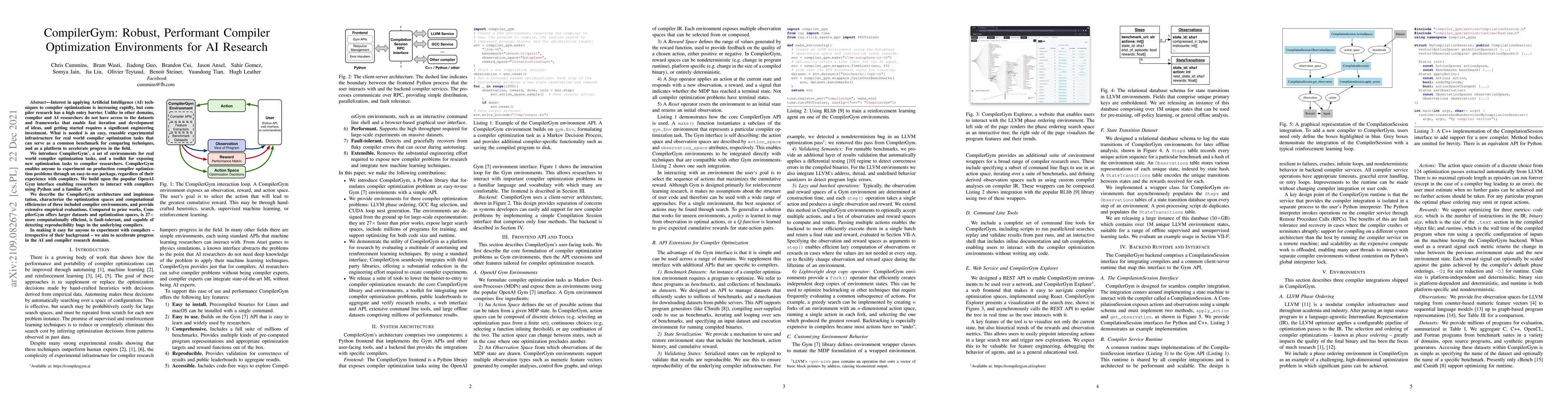CompilerGym provides a robust, performant environment for AI research in compiler optimization, featuring a user-friendly Python interface based on the popular Gym framework. It aims to lower the entry barrier for compiler research by offering large datasets and efficient, fault-tolerant optimization tasks, thereby accelerating progress in both AI and compiler optimization fields.