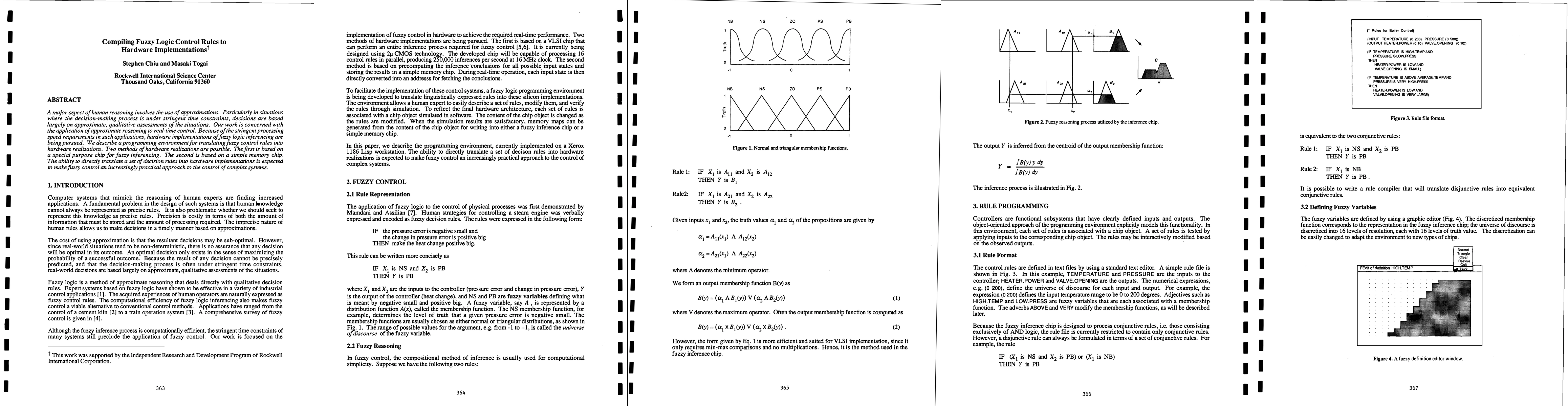 This paper presents a programming environment for converting fuzzy logic control rules into hardware implementations, focusing on real-time control applications. It explores two hardware realization methods: a specialized chip and a simple memory chip, aiming to make fuzzy control more practical for complex systems.