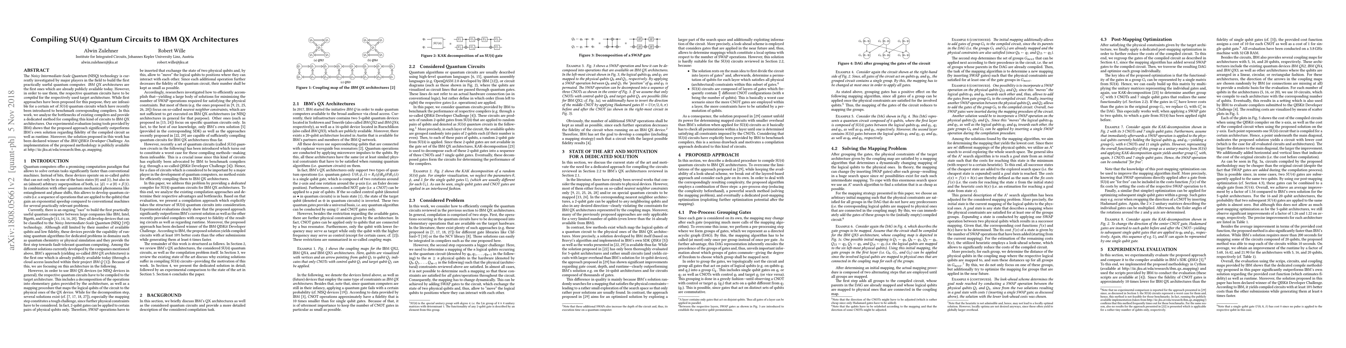 This paper proposes an improved method for compiling SU(4) quantum circuits to IBM QX architectures, addressing the limitations of existing compilers. The new approach significantly outperforms IBM's solution in terms of fidelity and runtime, winning the IBM QISKit Developer Challenge.